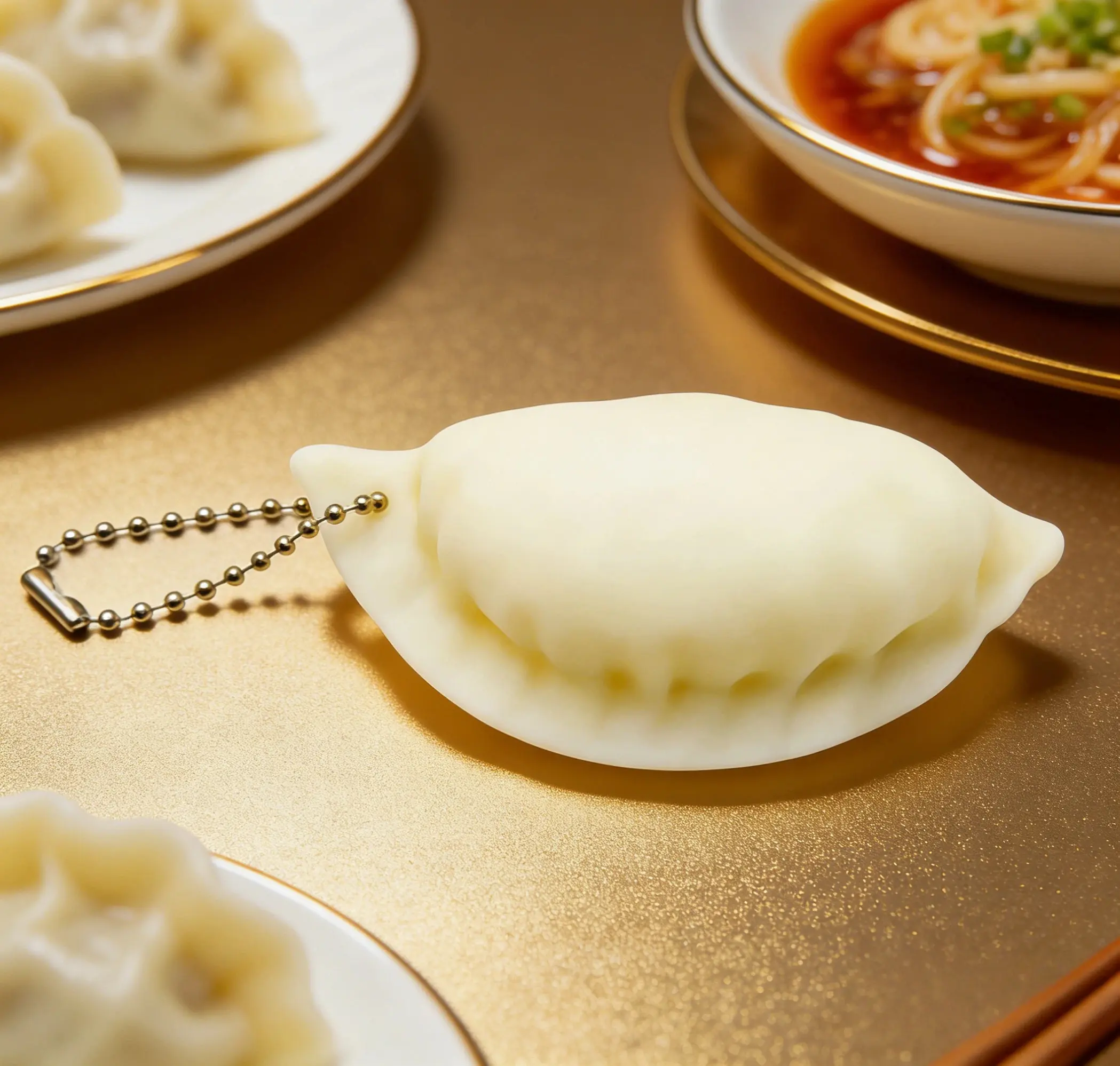 Adorable Mini Dumpling & Osmanthus Cake Squishy Keychain, Soft Squeeze Stress Relief Fidget Toy, Funny Decompression Pendant, Trendy Novelty Gift for Young Adults