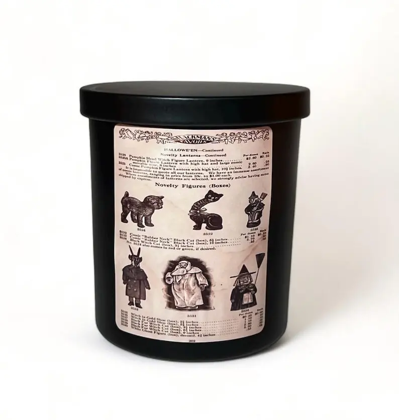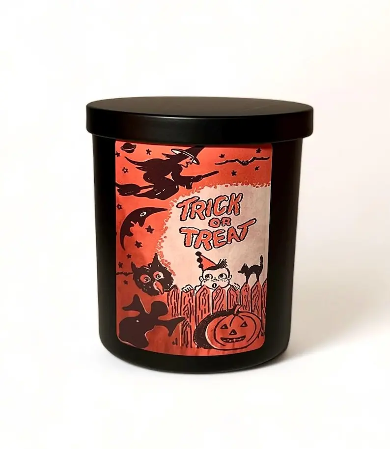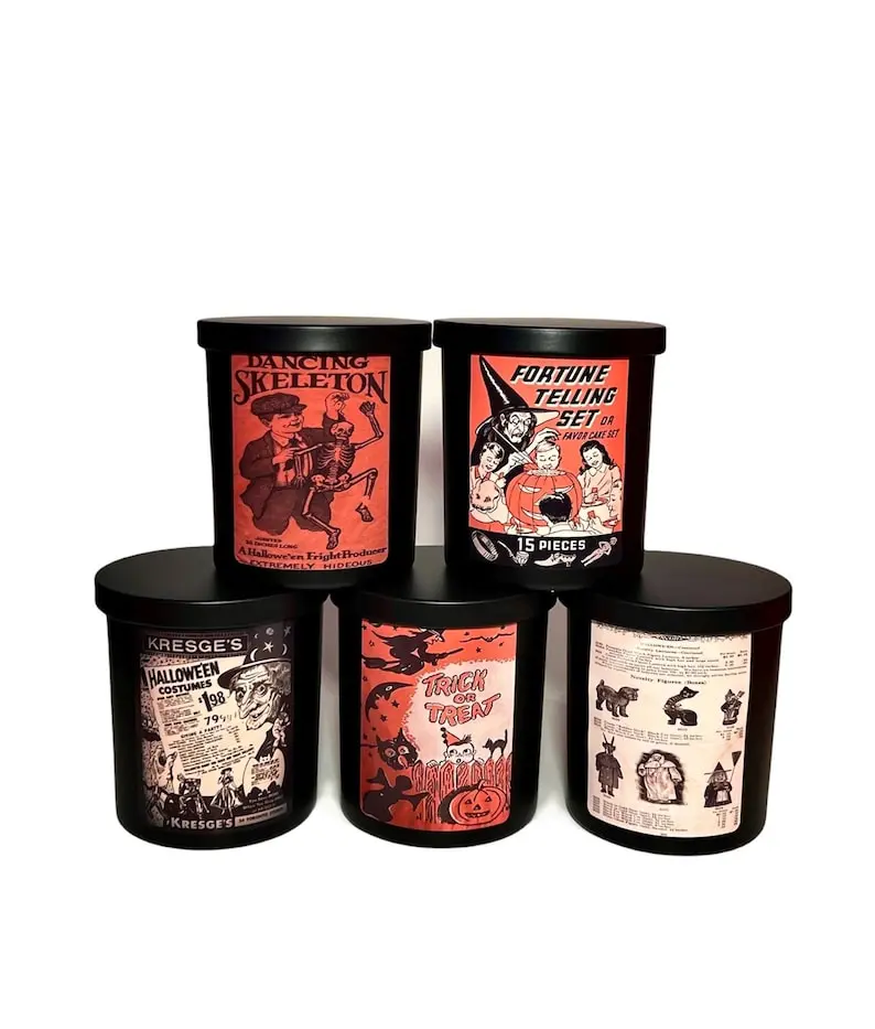 This candle collection is a tribute to vintage Halloween. Bring back all the spooky nostalgia of old decor, favors, treat bags, store ads and catalogs. You can also choose your own scent for this collection from our spooky scent library: