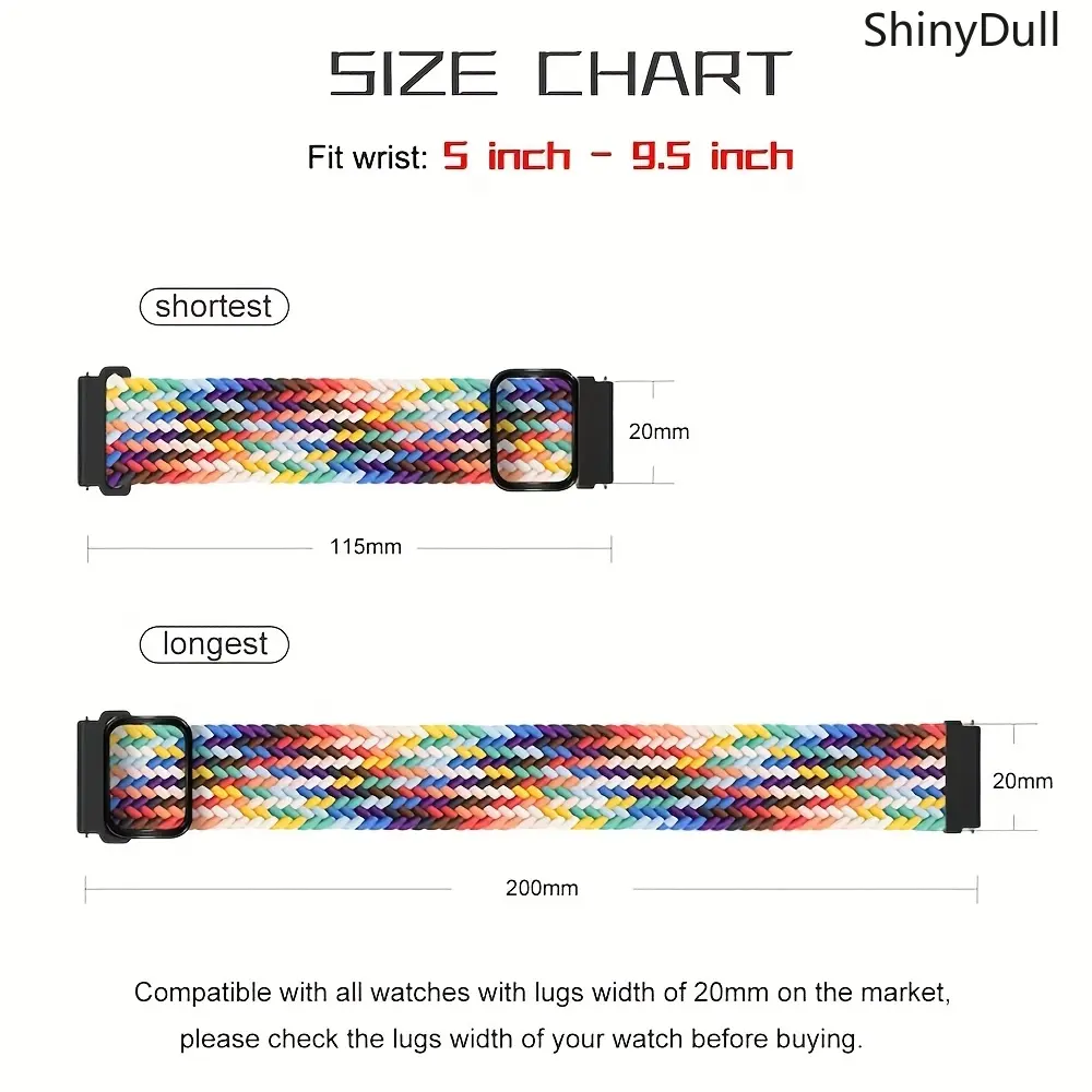 Elastic Braided Nylon Solo Loop Bands – Adjustable Stretch Strap 20/22mm for Samsung Galaxy Watch, Comfortable Sport Wristband, Unisex