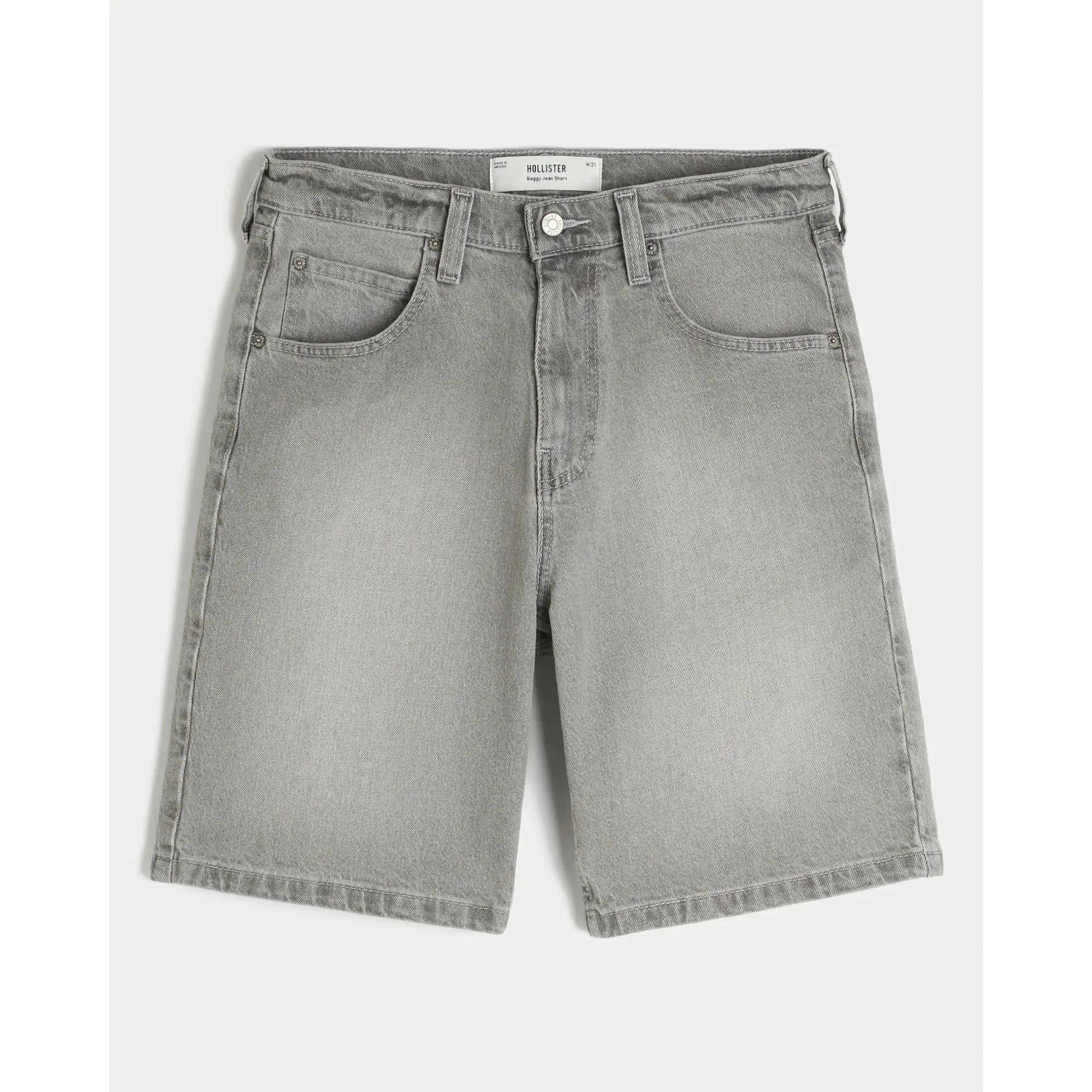 Classic denim shorts in grey, designed with a baggy fit. Fading, iconic 5-pocket styling. Imported.