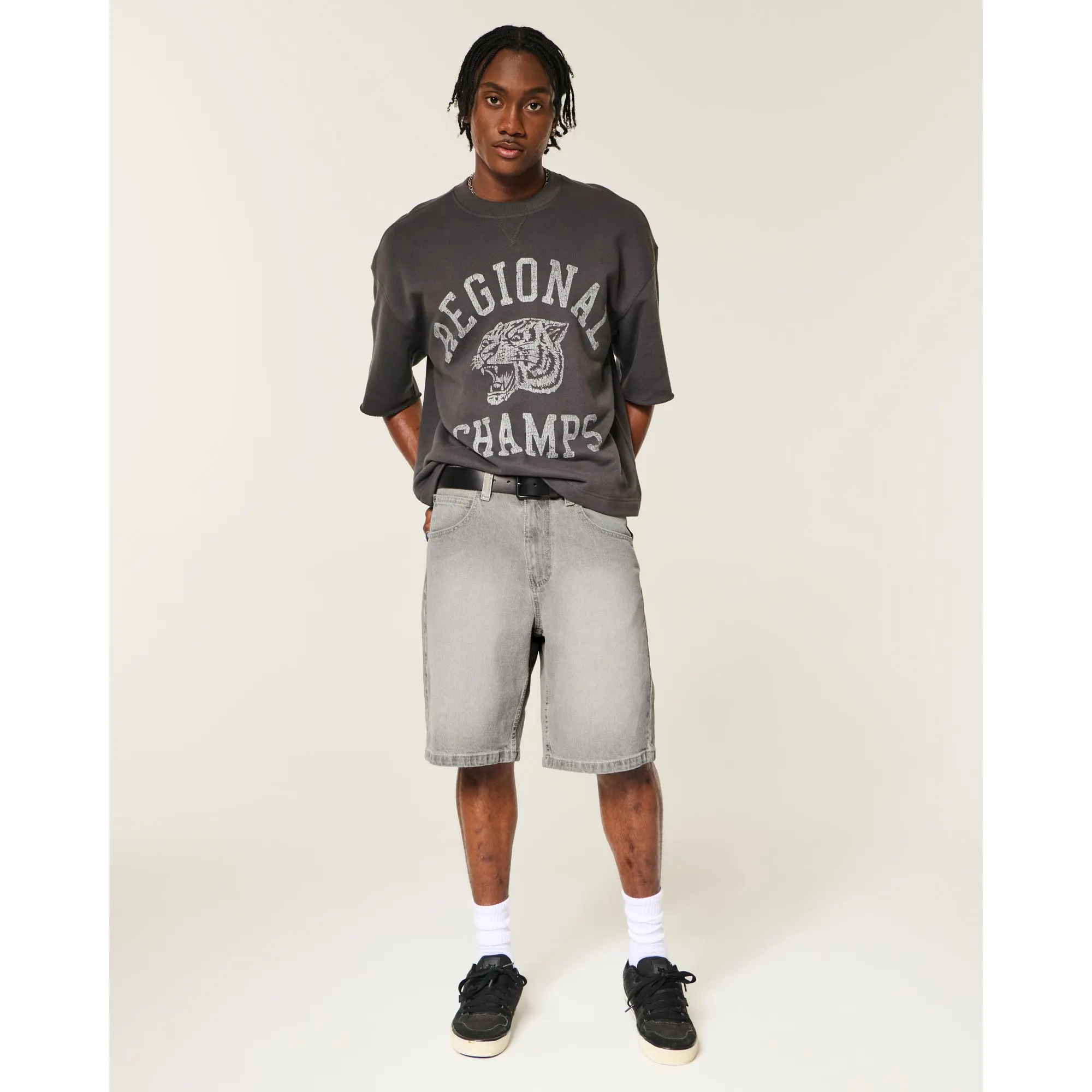 Hollister Grey Baggy Jean Shorts