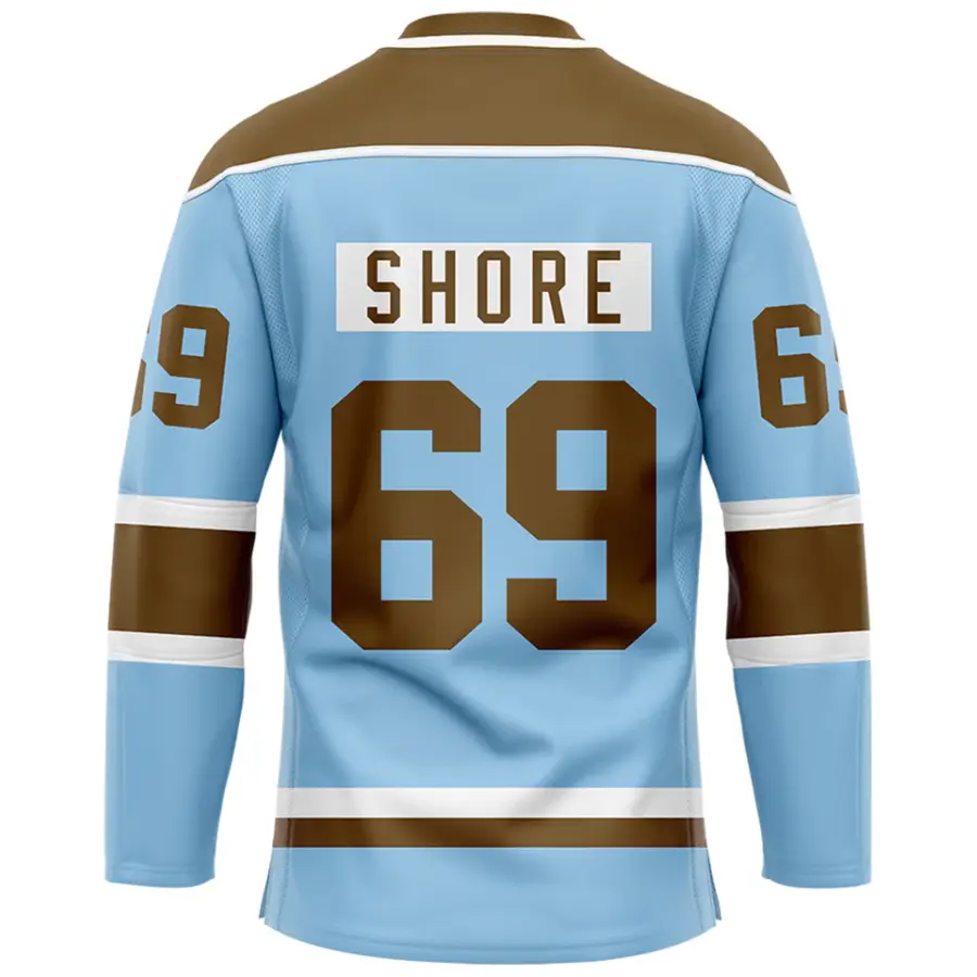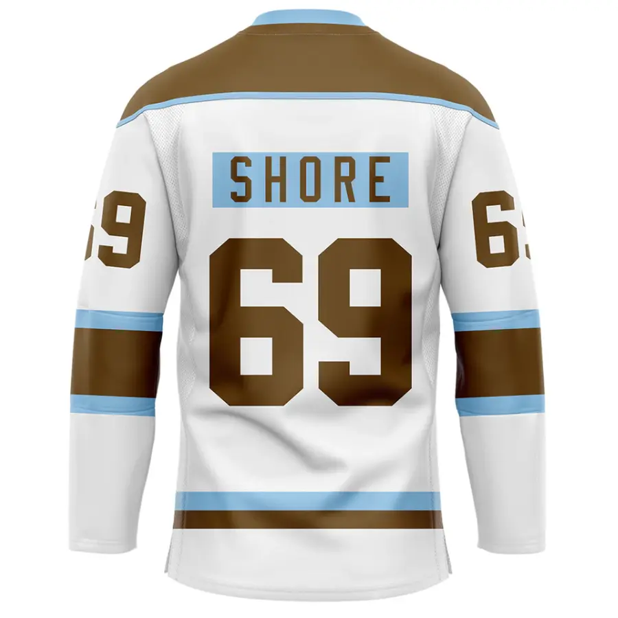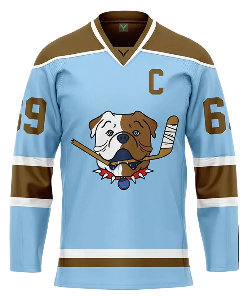 Featuring long sleeves and a classic V-neck collar, this jersey captures the true look of a traditional hockey uniform while remaining modern and comfortable for everyday wear.