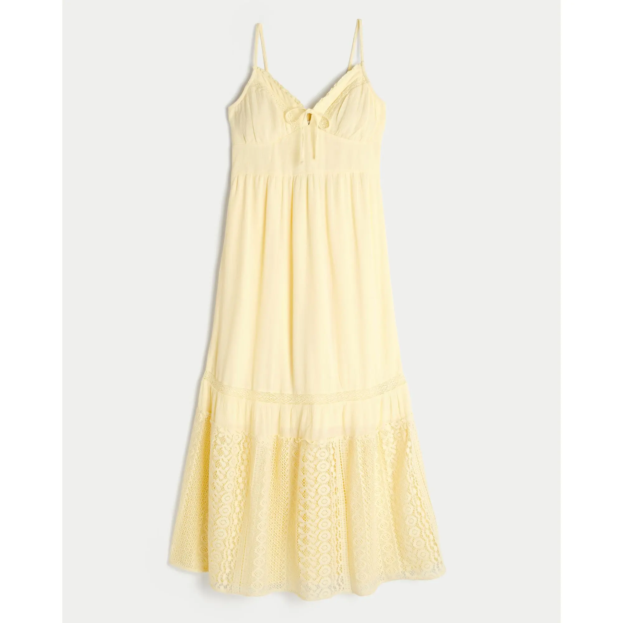Anabelle Halter Neck Lace Maxi Dress - Butter Yellow