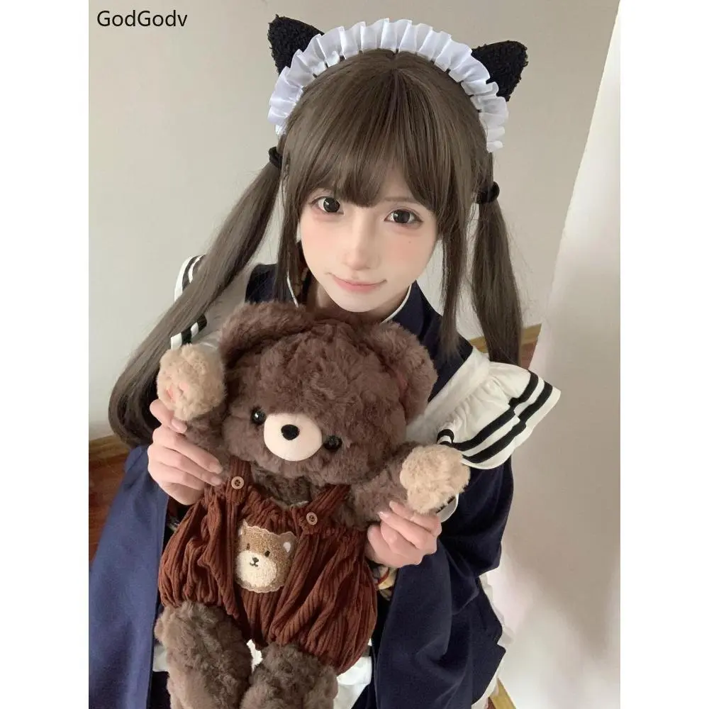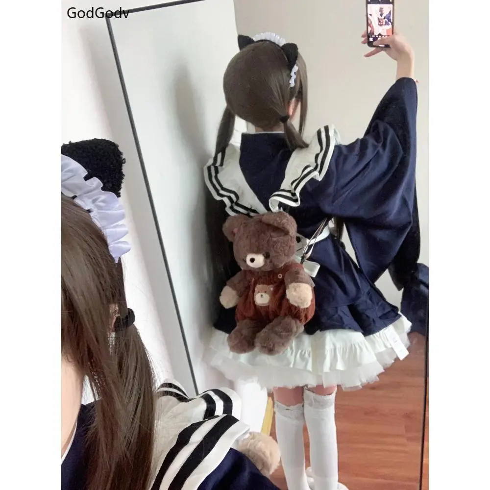 Spring Cosplay Lolita Woman Dress Elegant Bow Ruffle Design Navy Blue Cute Design Maid Dress Female Kawaii Chic Party Outfits