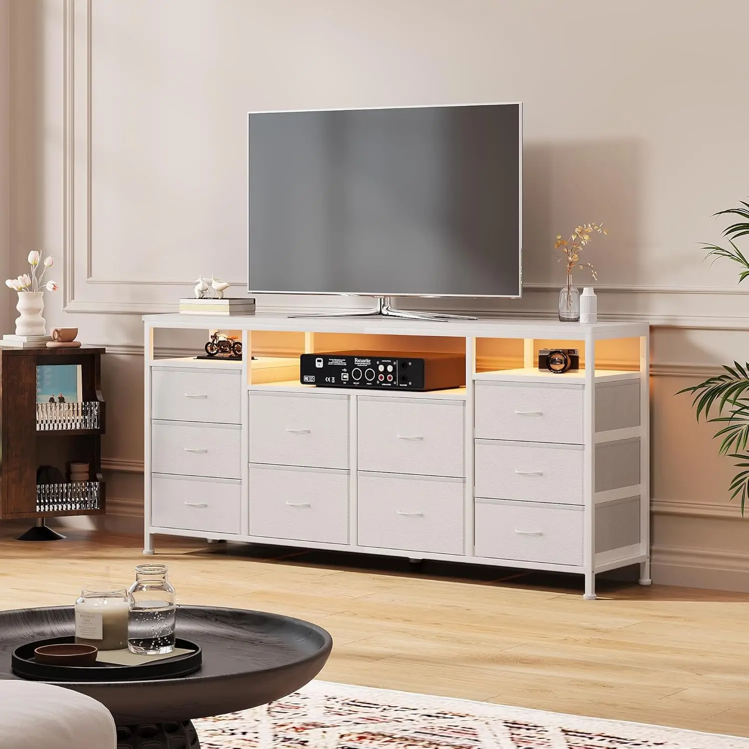 ·10 Drawers with Dual Storage Options: This fabric dresser entertainment center comes with two types of drawers for classified storage. Larger drawers are great for blankets and clothing, while smaller ones are ideal for toys, socks, and pants, ensuring every item has its own place.
