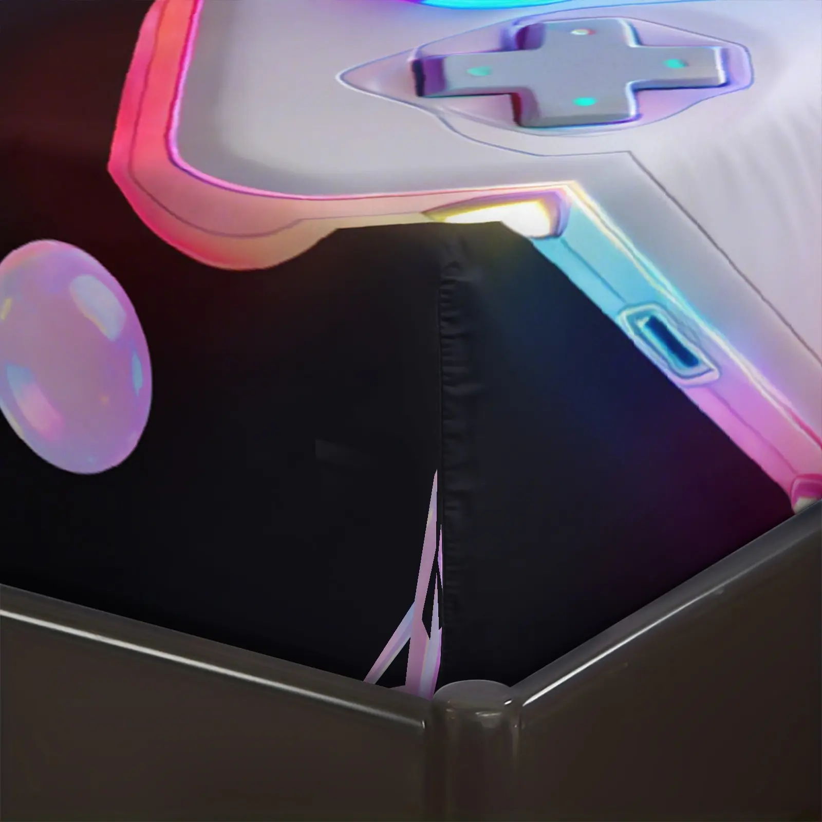 3-Piece Neon Game Controller Bed Set Fitted Sheet Set, Cyberpunk Style, Soft Skin-Friendly Fabric, Ideal for Gaming Rooms, Boys' Dorms, Comfortable & Stylish