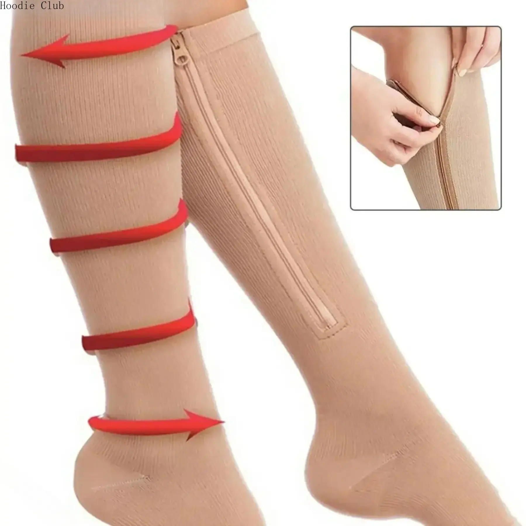 These compression socks are designed for varicose veins and edema relief. Perfect for women and men, they offer medical support with a stretchy, easy-on zip design. Ideal for sports and daily wear, these socks provide comfort and support. 🏃♀️