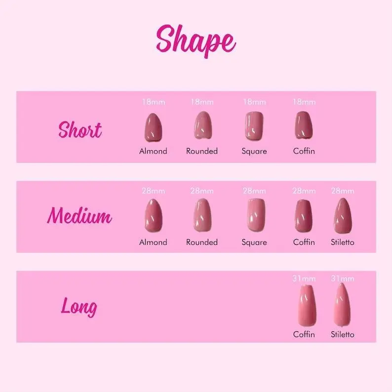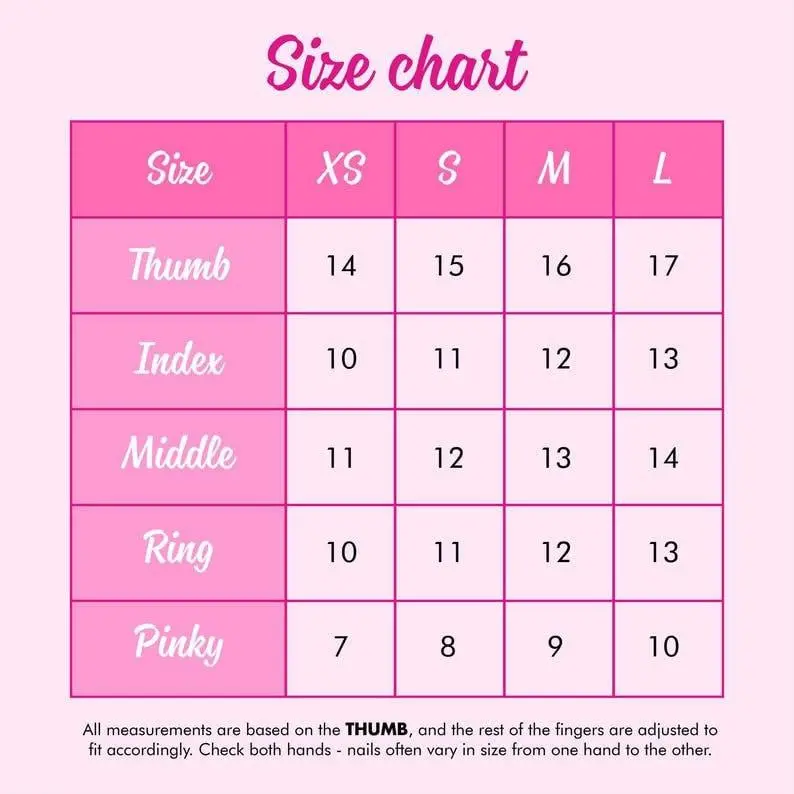 Please ensure you’ve selected the correct nail size and shape. For hygiene reasons, we are unable to accept returns or exchanges.