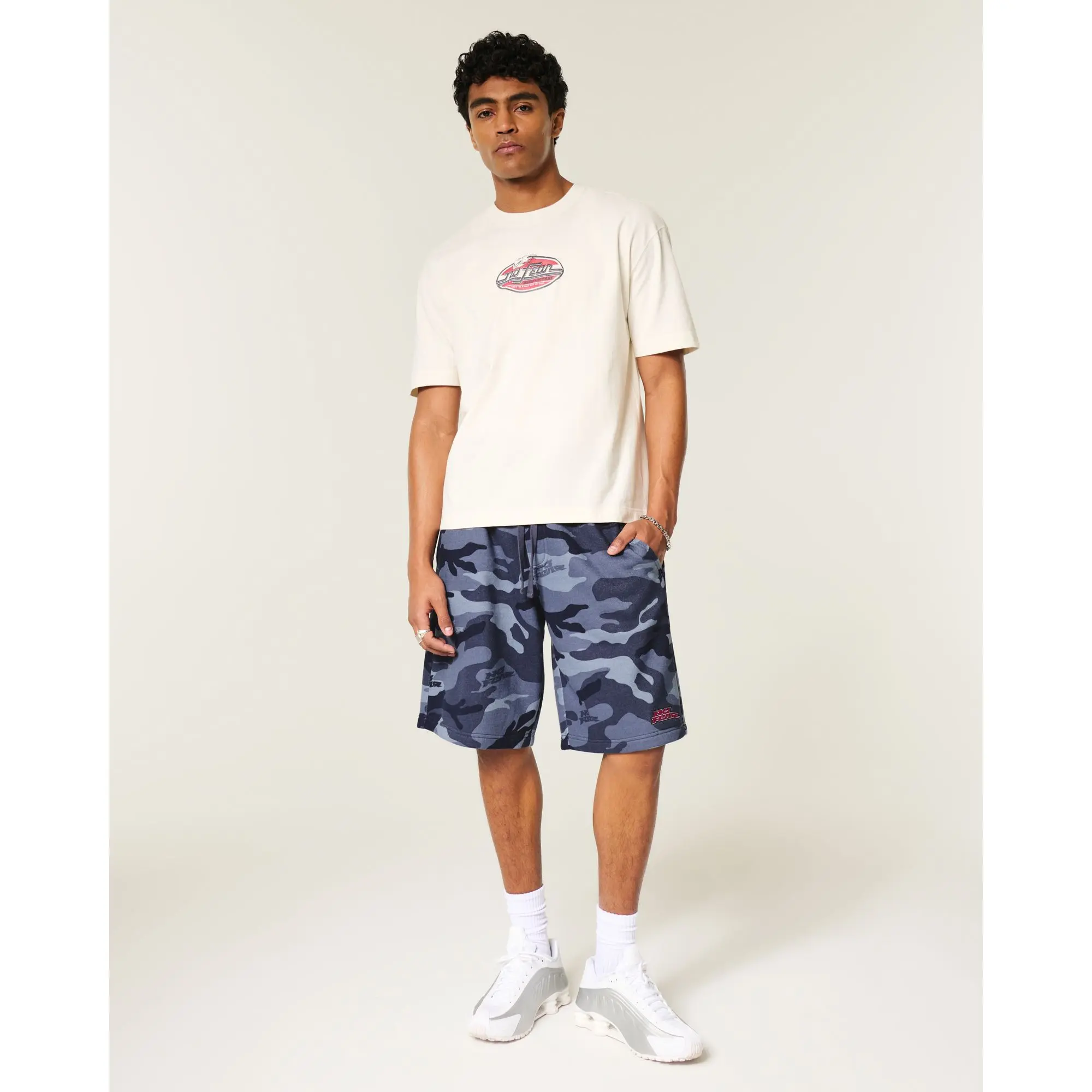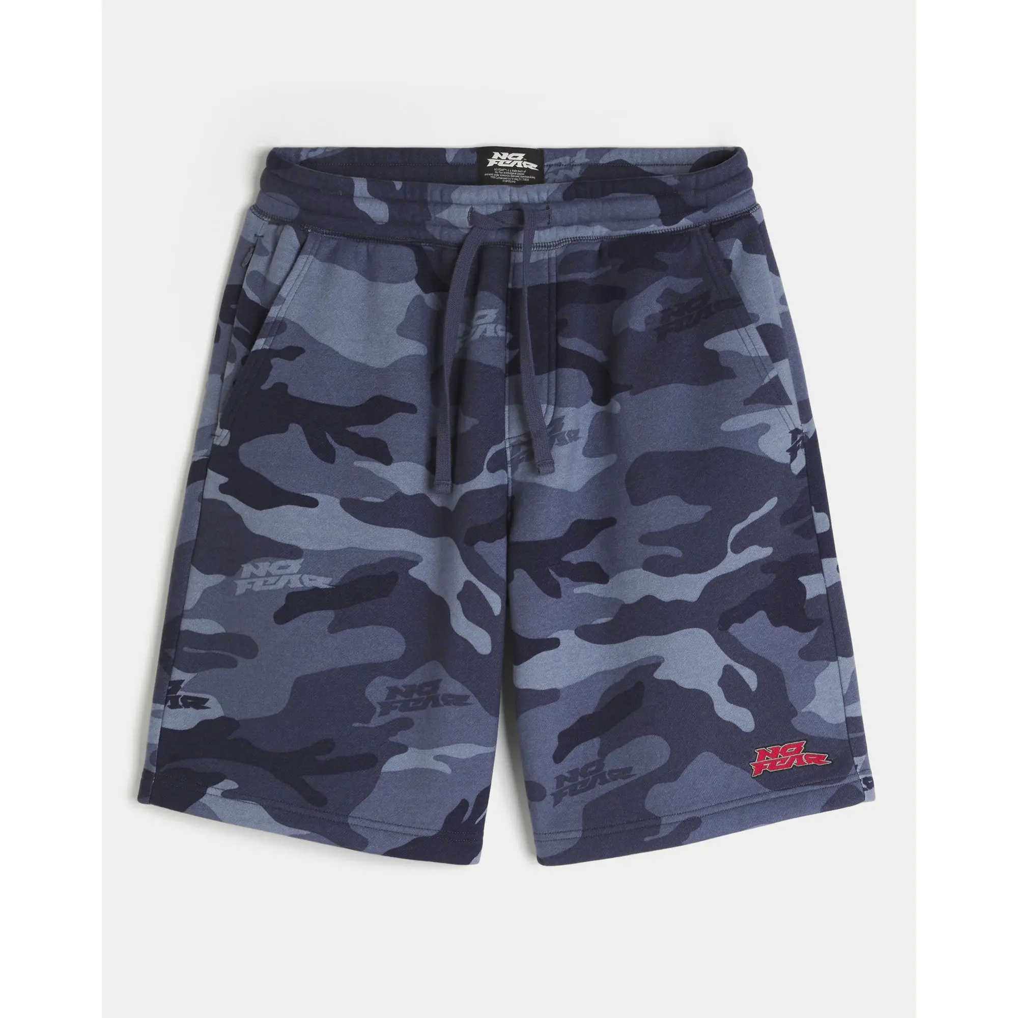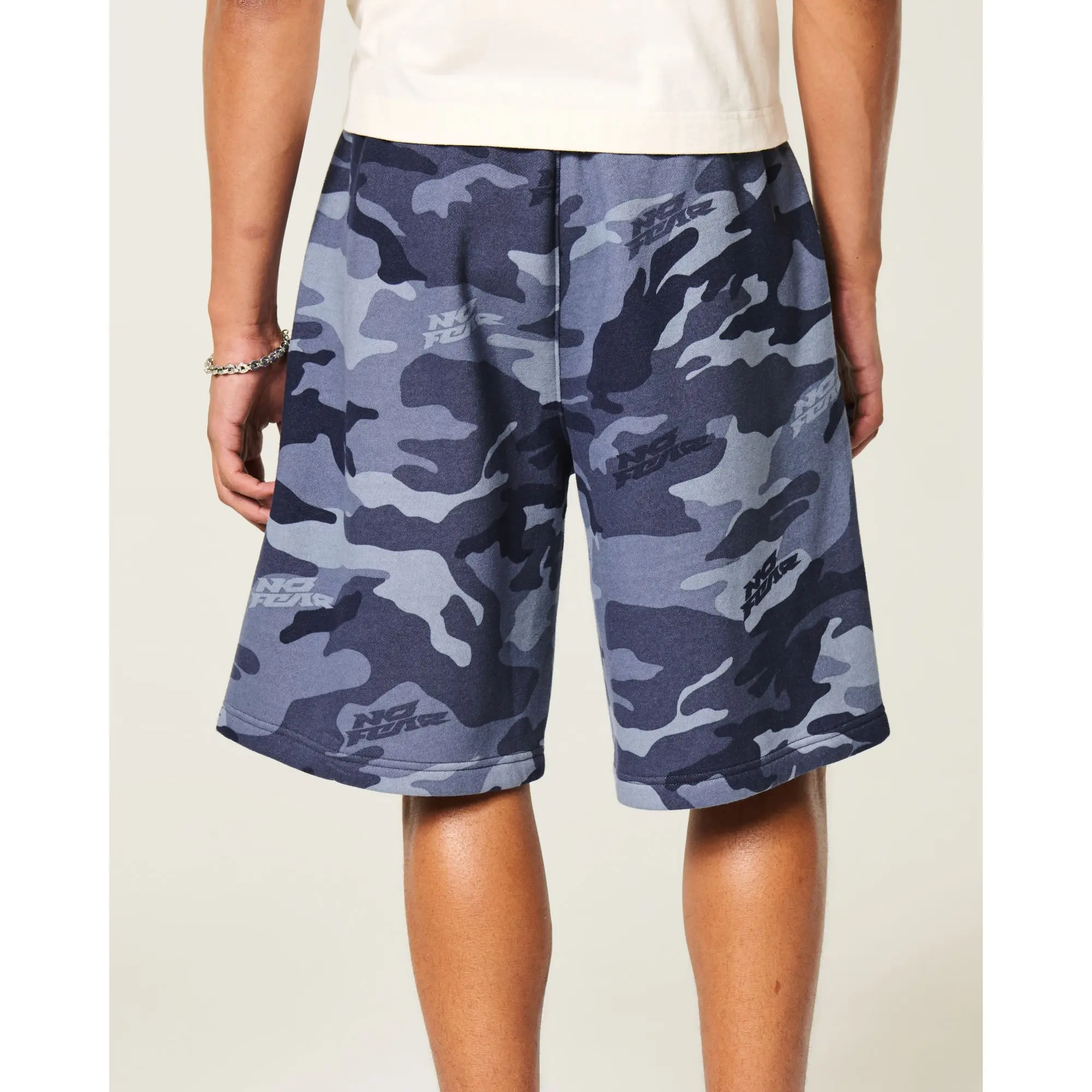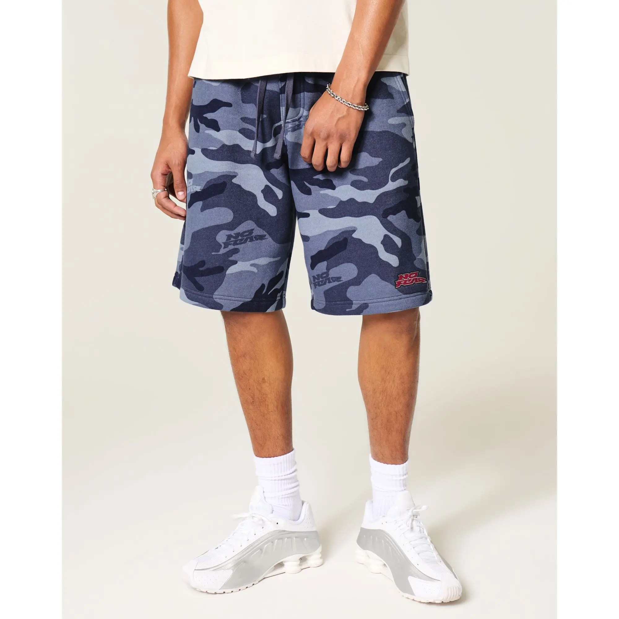 Hollister At-The-Knee Camo No Fear Graphic Baggy Fleece Shorts