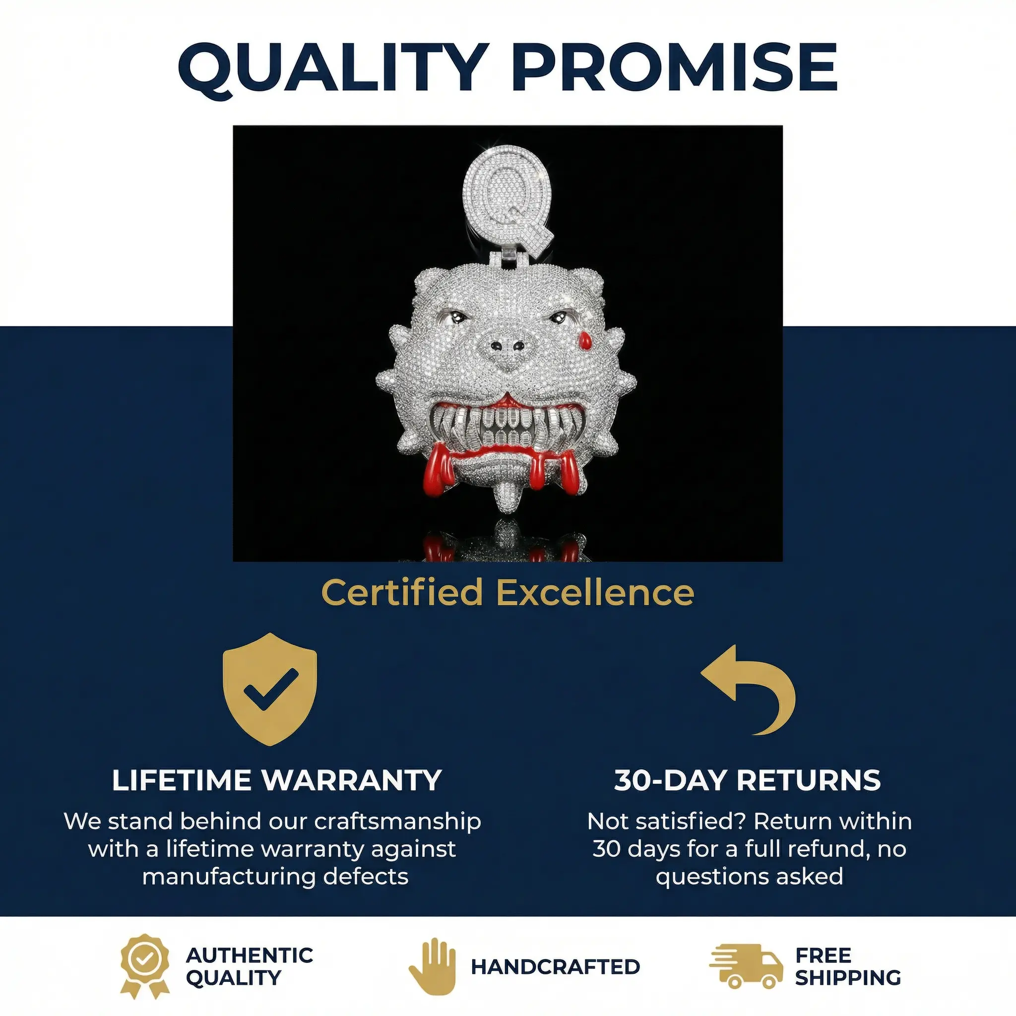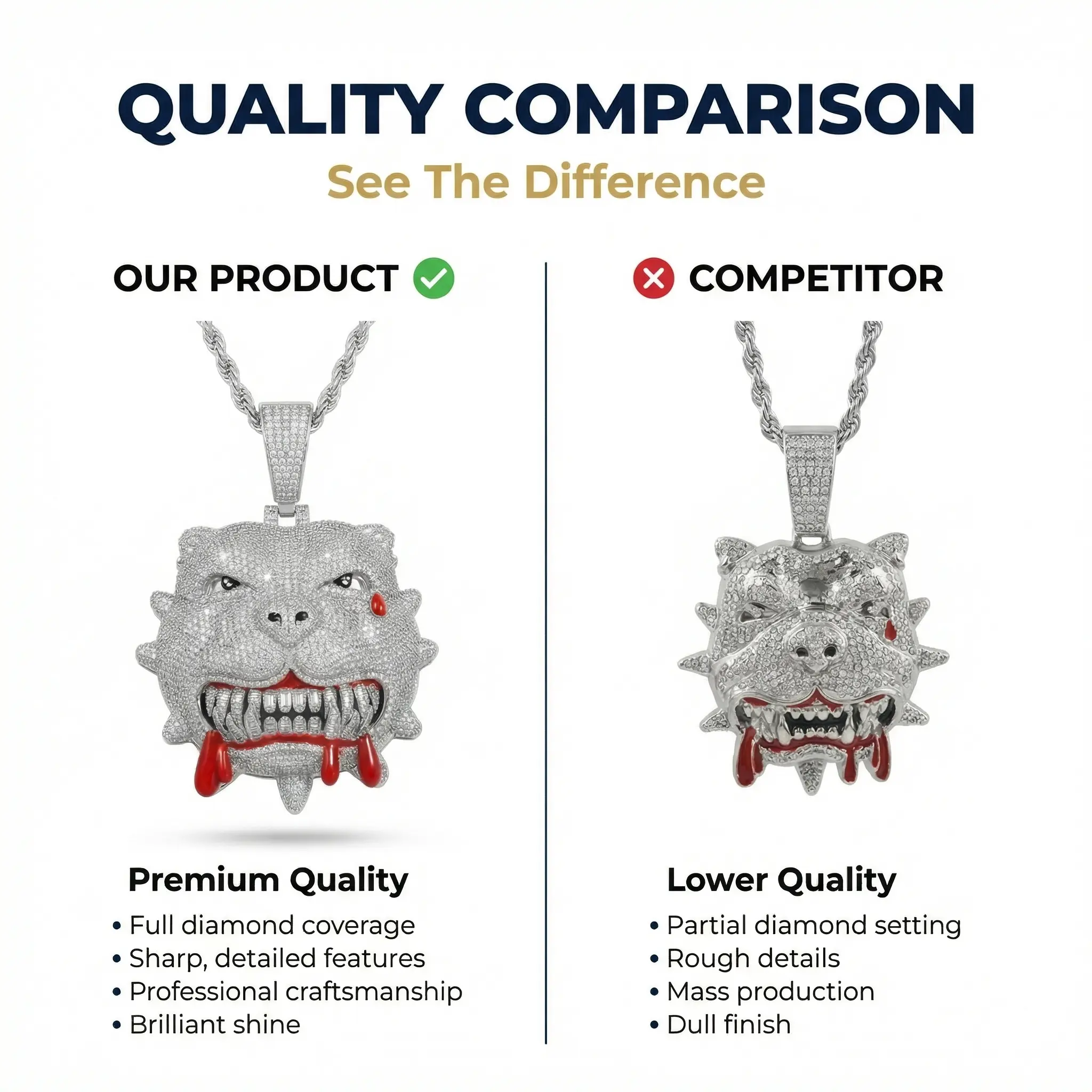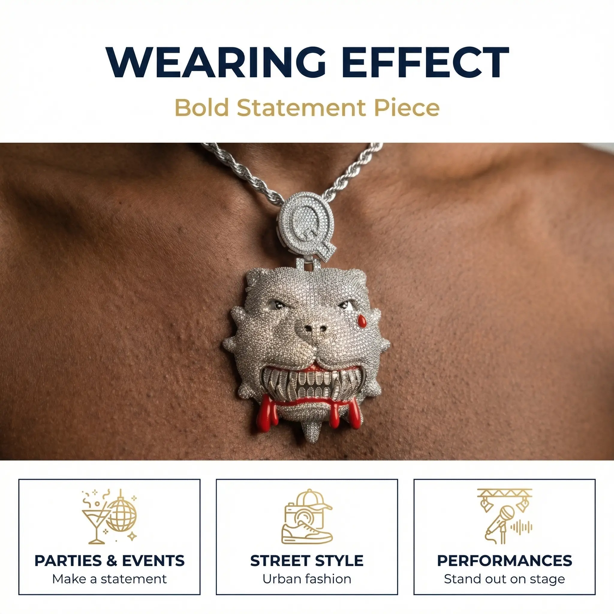 This chain is not for the faint of heart.Featuring an aggressive spiked bulldog mascot with a red teardrop and bloody fangs, this piece screams hardcore trap and Y2K drill aesthetic.It’s heavy, it’s blindingly shiny, and it shows the streets you mean business.Catching crazy light from every angle, this is the ultimate statement piece for your collection.