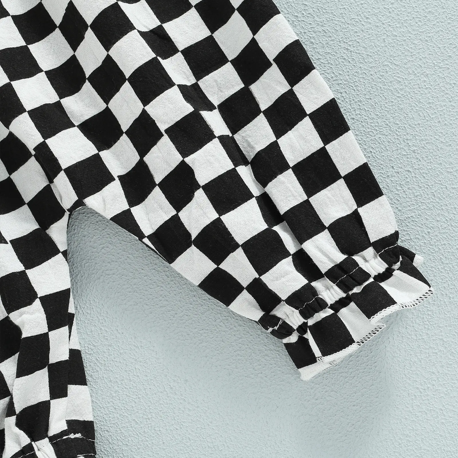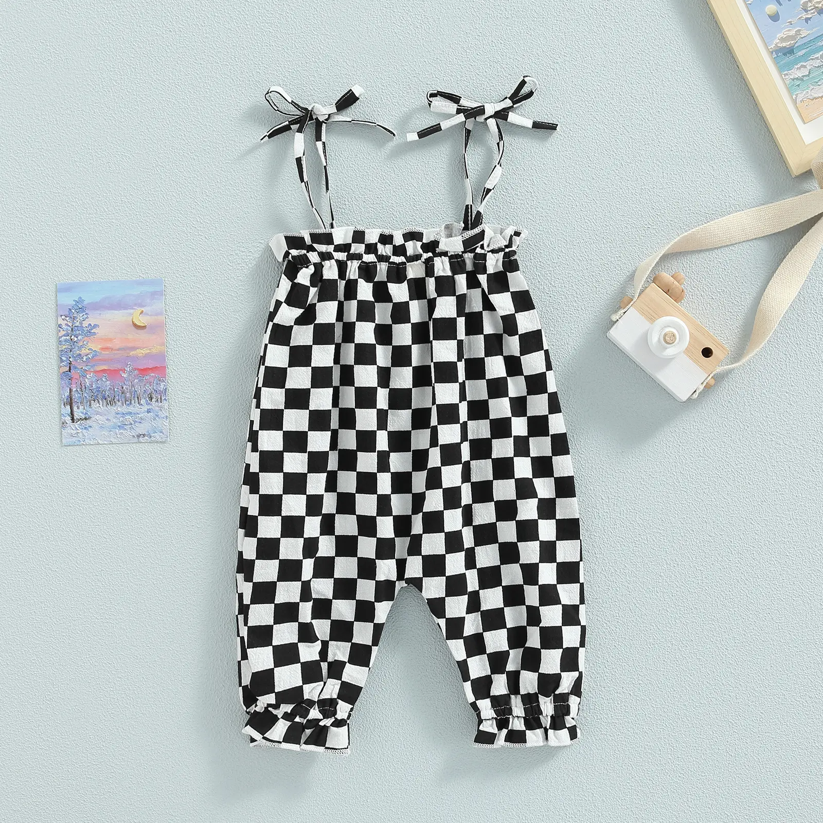 Brown checkerboard plaid pattern off-the-shoulder sleeveless jumpsuit, cute and beautiful.