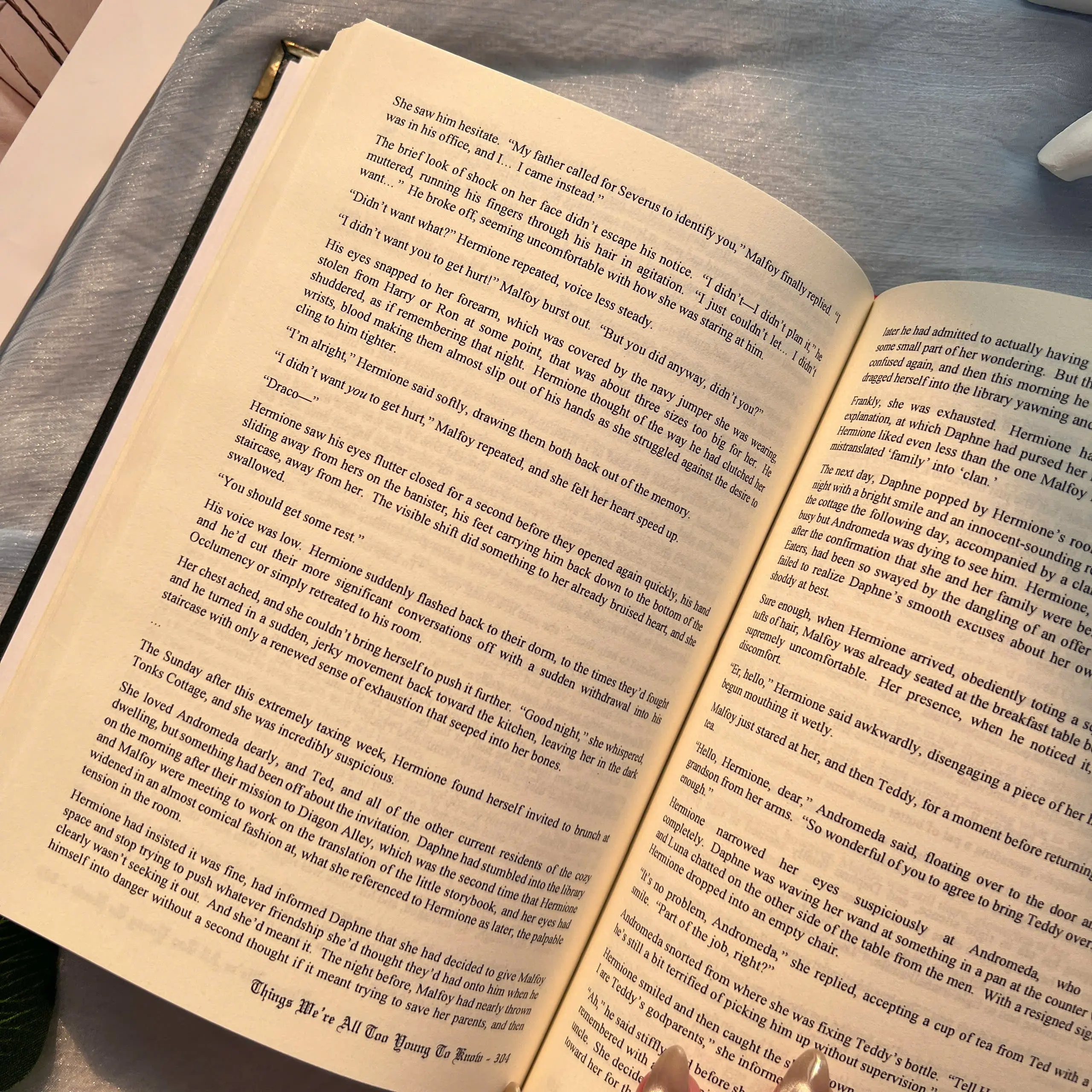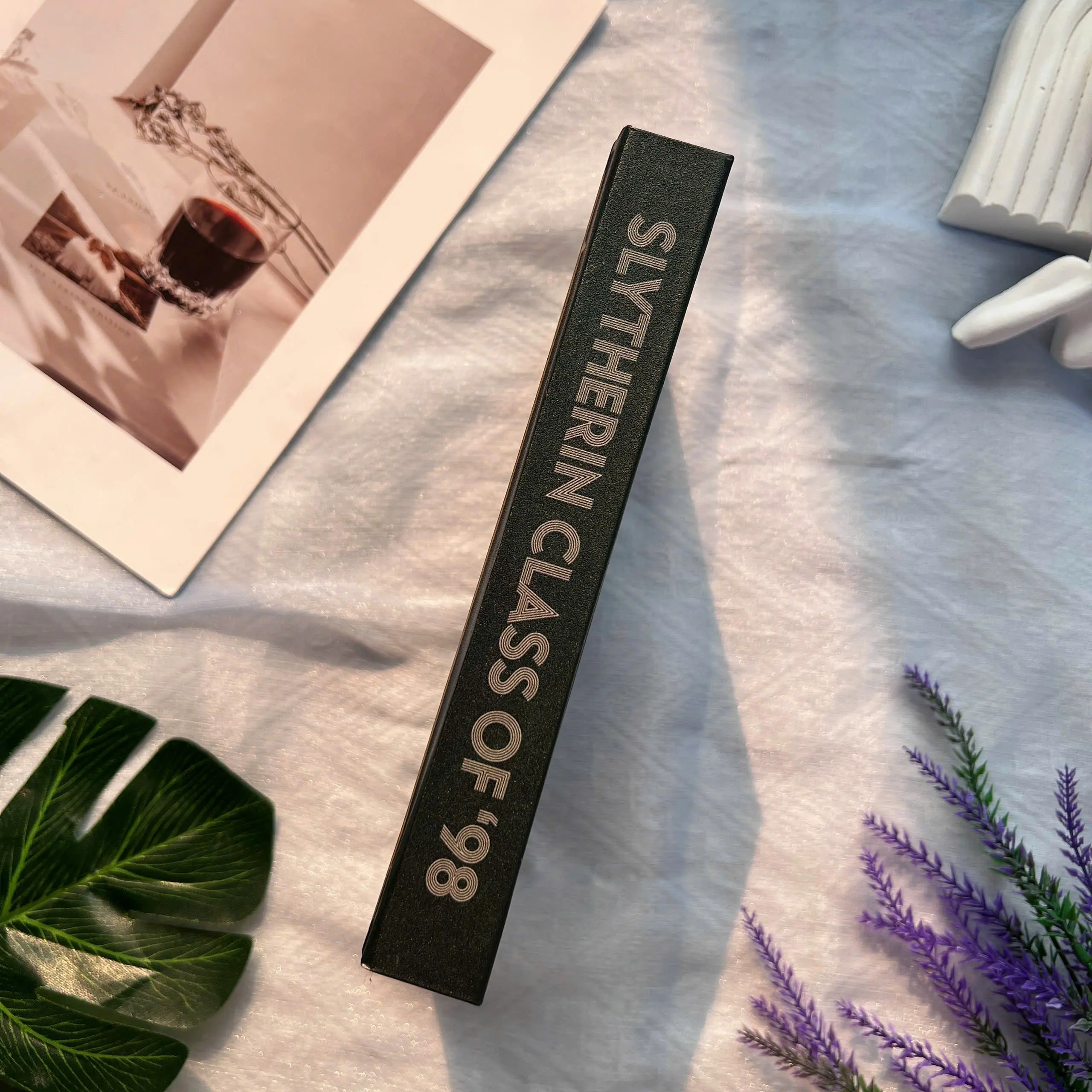 Step into a darker, reimagined Hogwarts with Slytherin Class of ’98 by Eevans, a unique Dramione fanfiction presented in a striking yearbook-style hardcover edition.