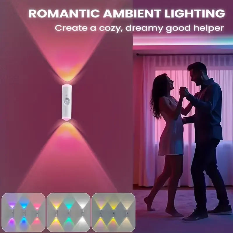 With 3/4 pieces, this set offers flexibility. Use it as a wall lamp or a step lamp. The gradient RGB lights add a modern touch. Ideal for indoor use, it creates a cozy atmosphere. Transform your space with this smart, rechargeable night light. For any questions, contact us within 24 hours.
