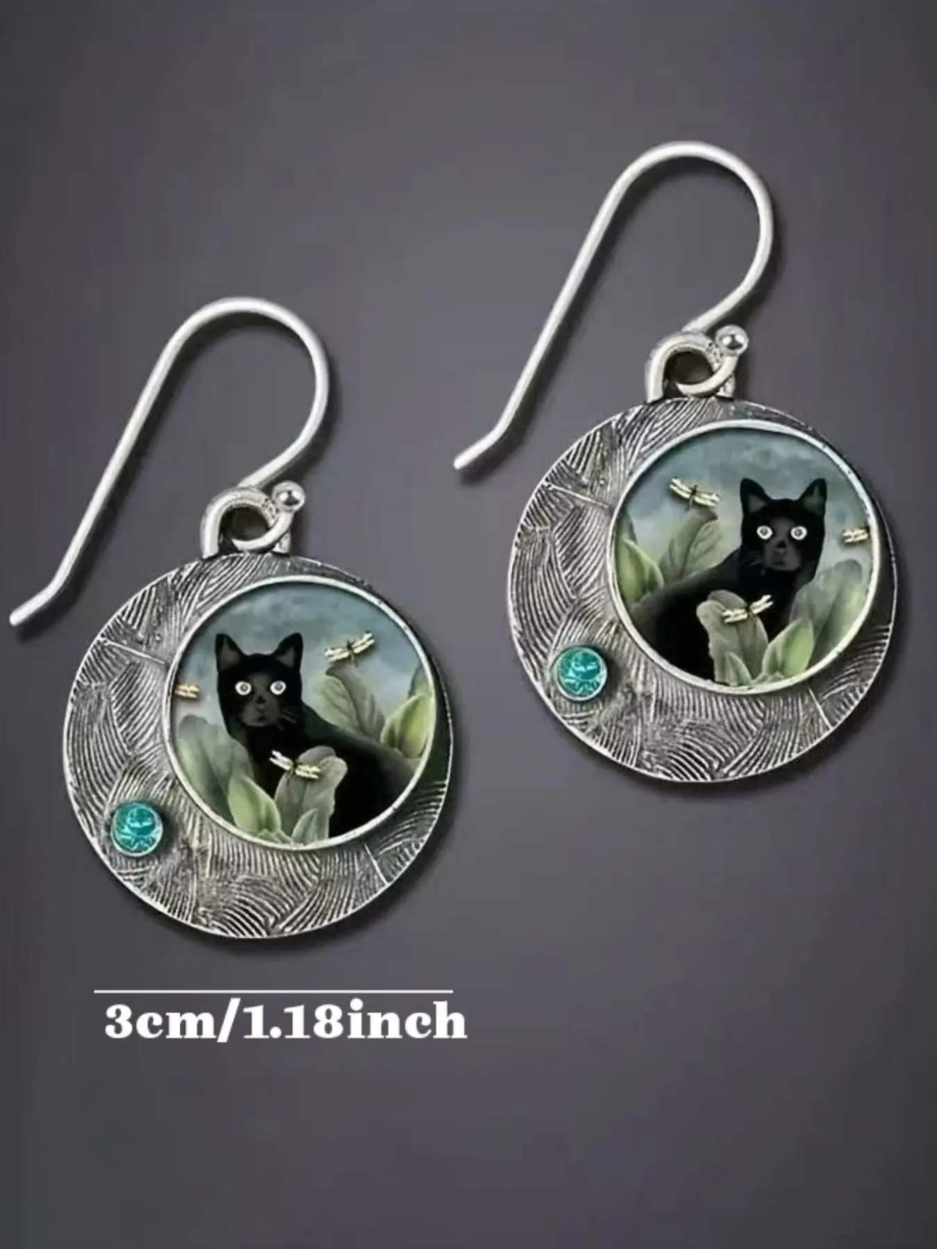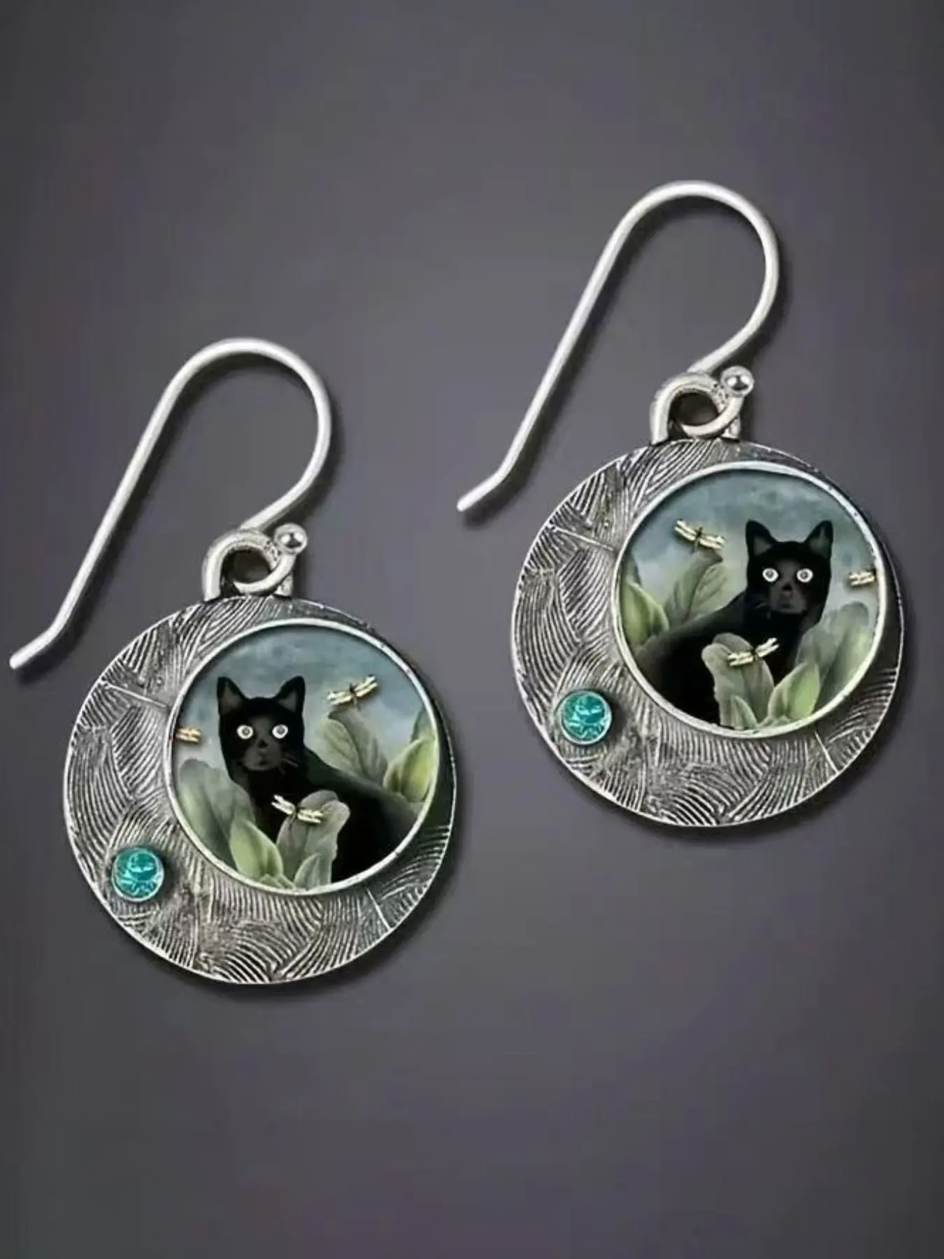 Vintage Cat Dragonfly Earrings, Whimsical Style,Simple Fashion, Perfect Gift, Daily Accessory, Party, Holiday, Retro Style, All Seasons