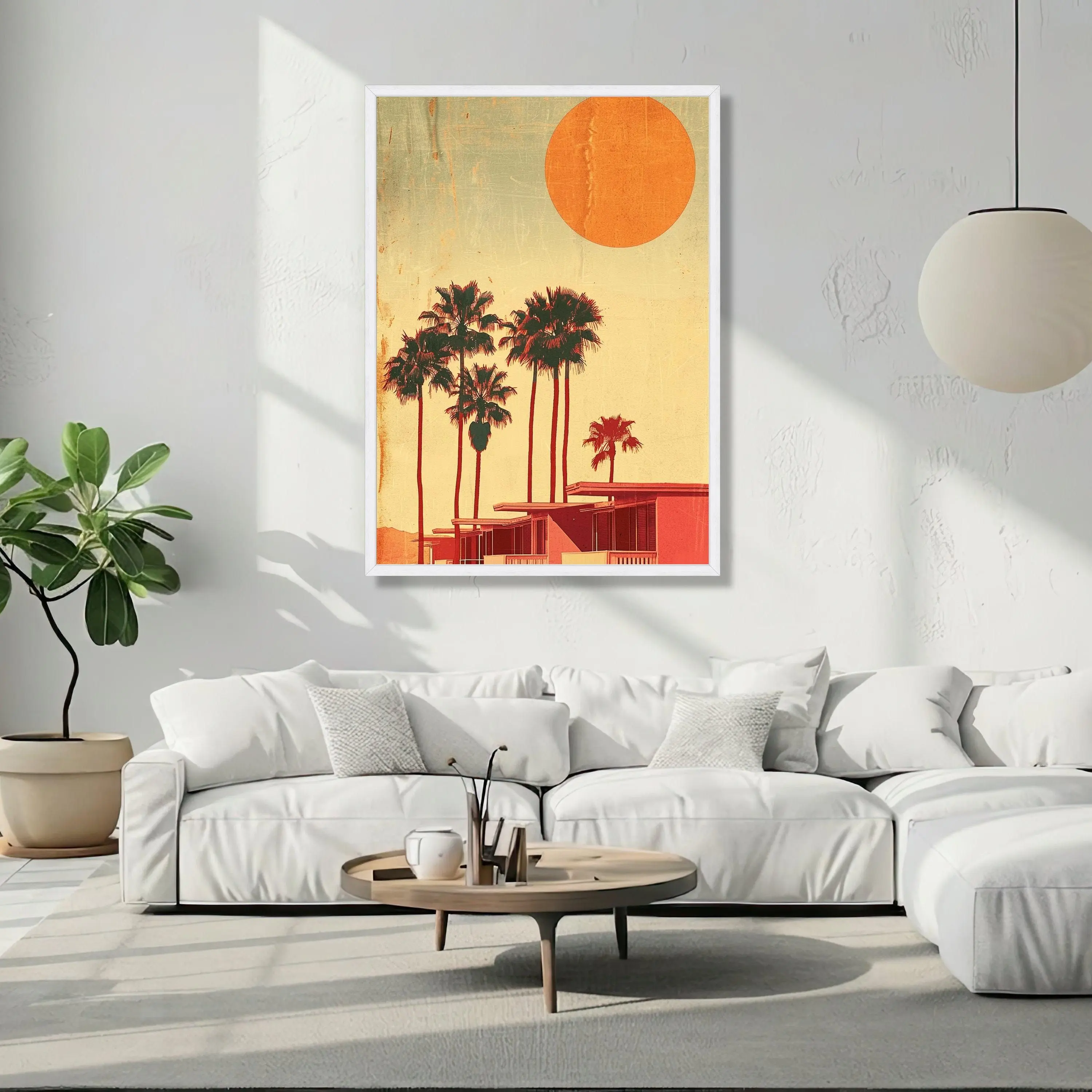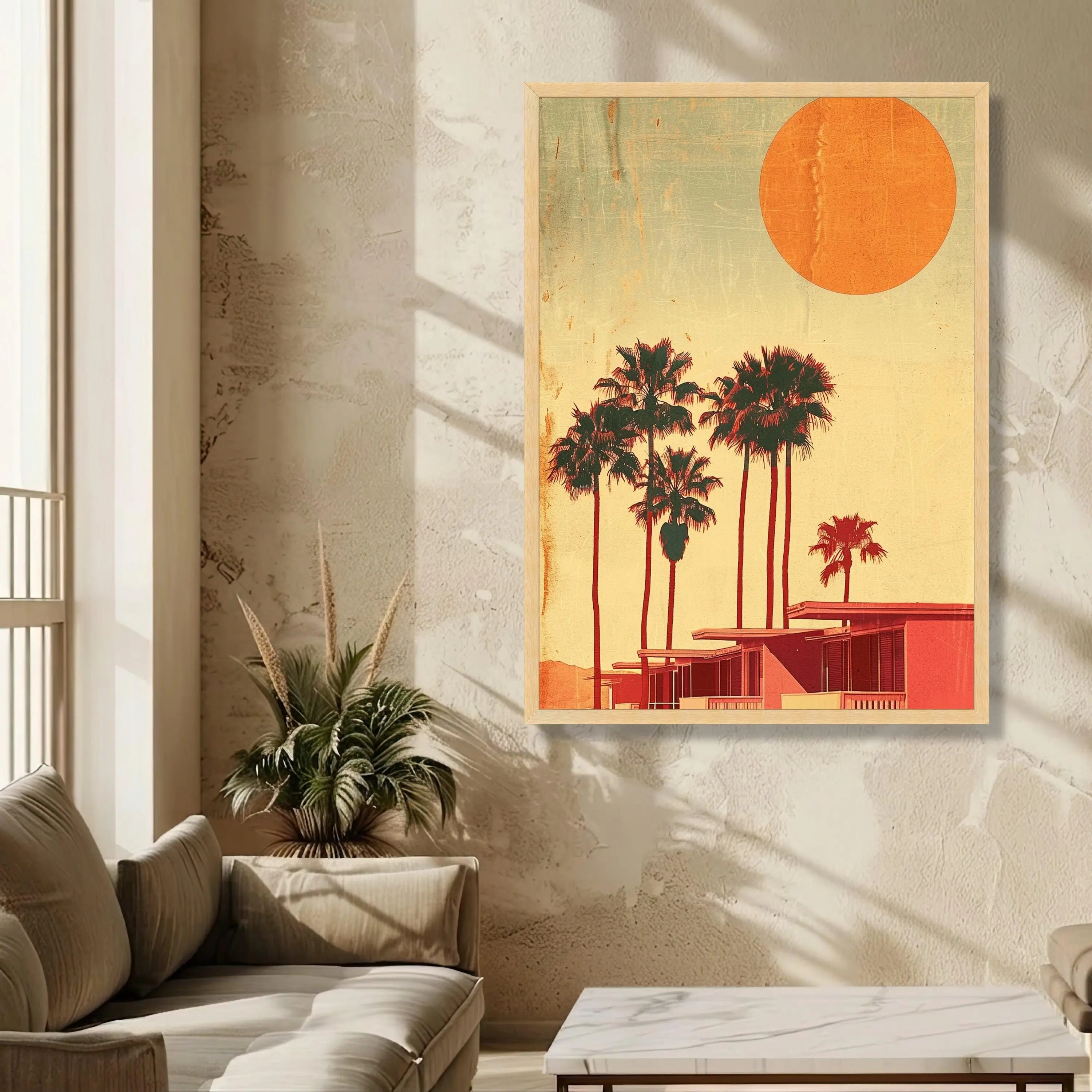 [Sale off up to 40%] [Frame Canvas] Retro Palm Trees Sunset Canvas, Mid-Century Modern Wall Art, California Vibes Print