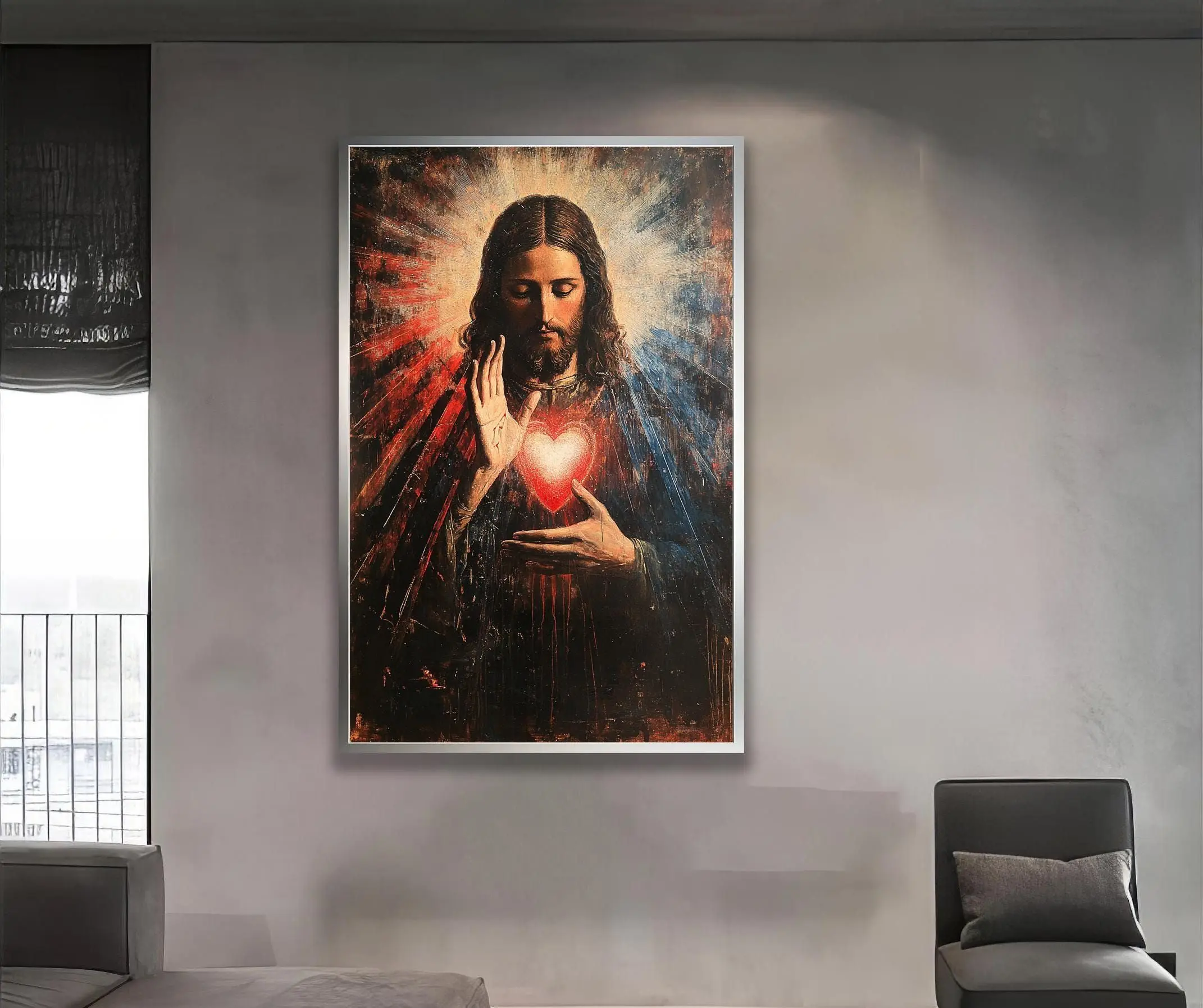 [Sale off up to 40%] [Frame Canvas] Sacred Heart Jesus Religious Wall Decor Canvas, Timeless Devotional Image