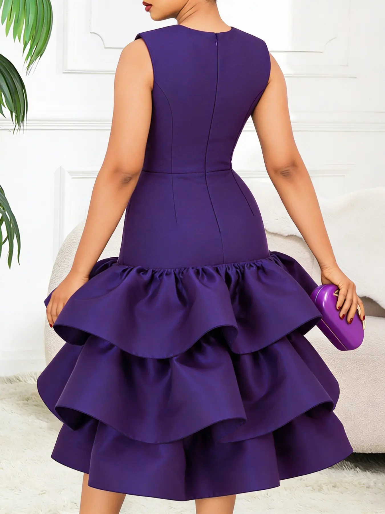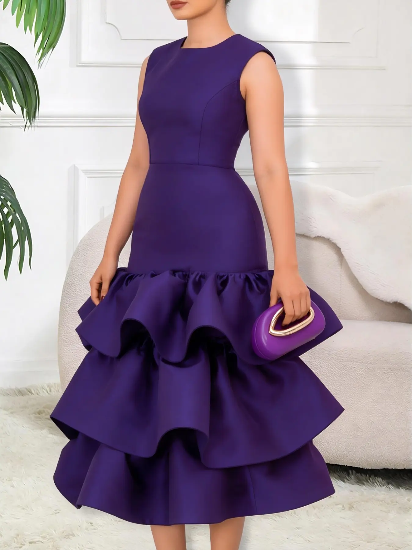 Women's Fashion Sleeveless Bodycon Dress, Elegant Round Neck Three-Layer Ruffle Fish Tail Party Gown, Stylish Evening Wear