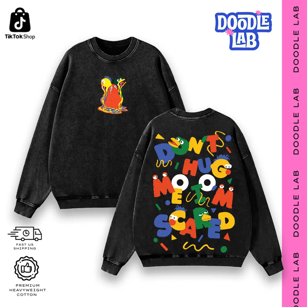 Don't Hug Me I'm Scared Melting Graphic Tees • Hoodie Streetwear • Vintage Oversized Acid Wash • Retro 90s Animation Merch • Heavyweight Menswear Comfort Cotton