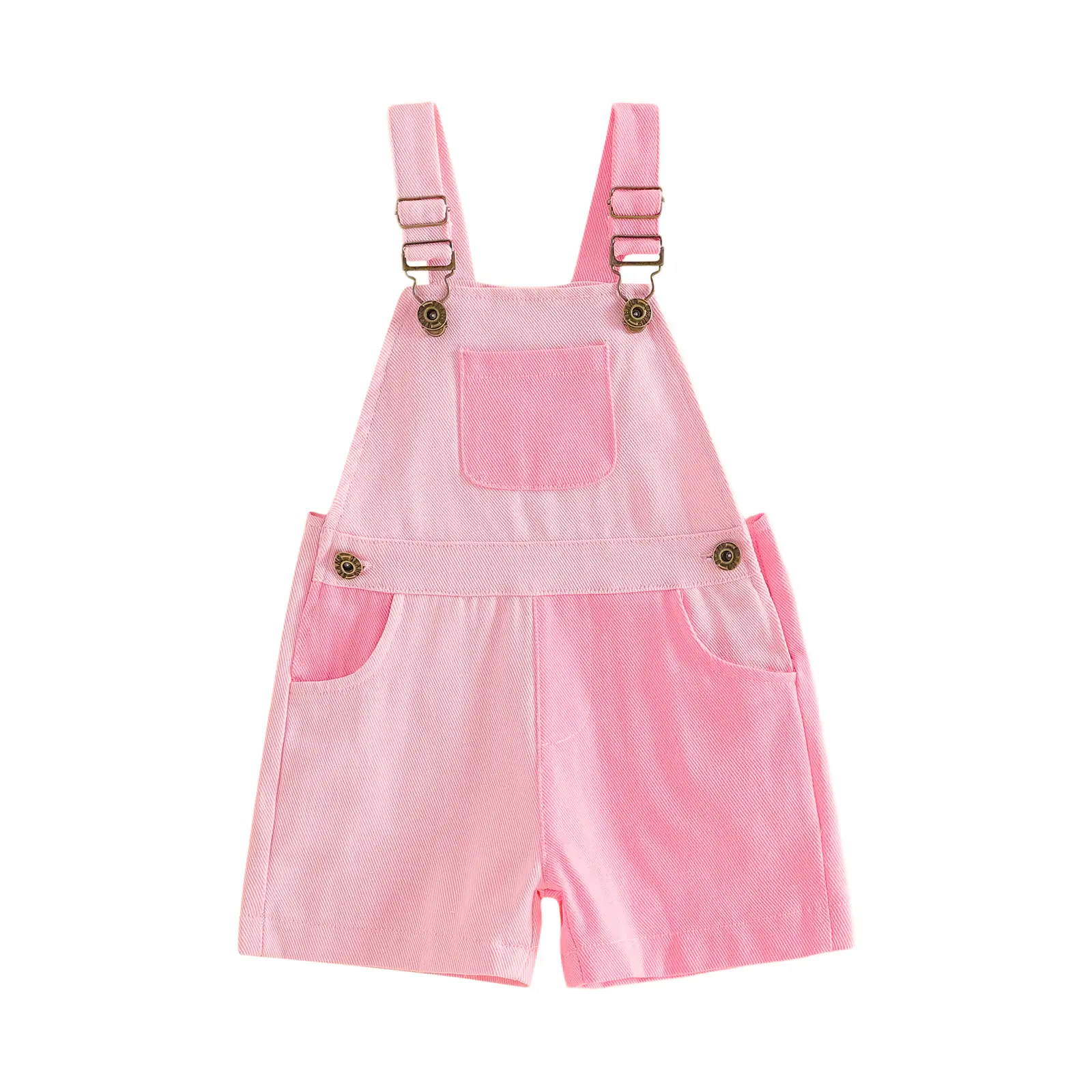 Kids Girls Boys Overall Shorts, Cute Contrast Color Summer Jumpsuit with Pockets for Casual Daily
