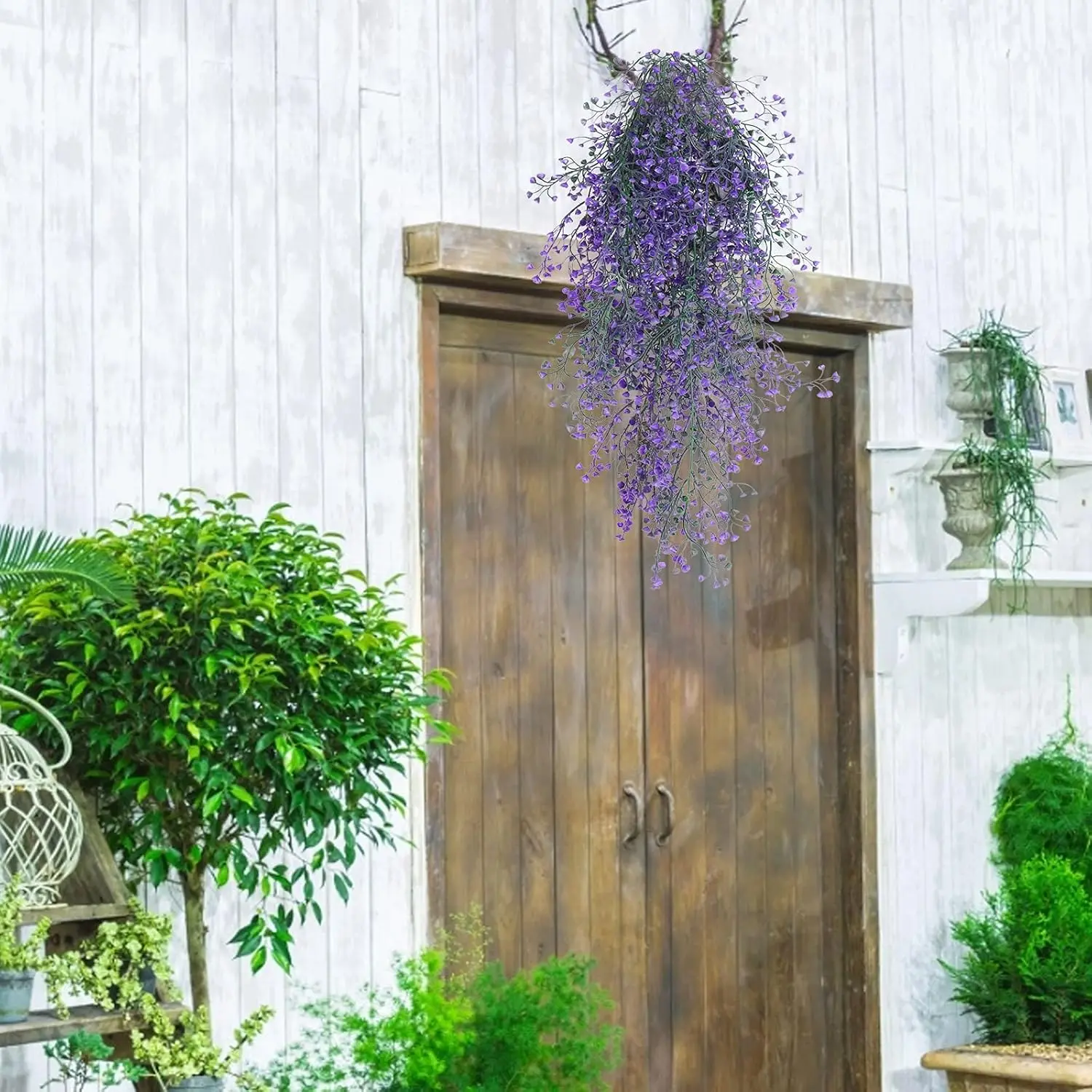 ·Faux Hanging Plants for OUTDOOR: Made of water proof plastic, the fake vines plants can hold up themselves nicely in the sun and rain. The artificial hanging fern plant can brighten up the space indoors and outdoors. You can hand them on bedroom, bathroom