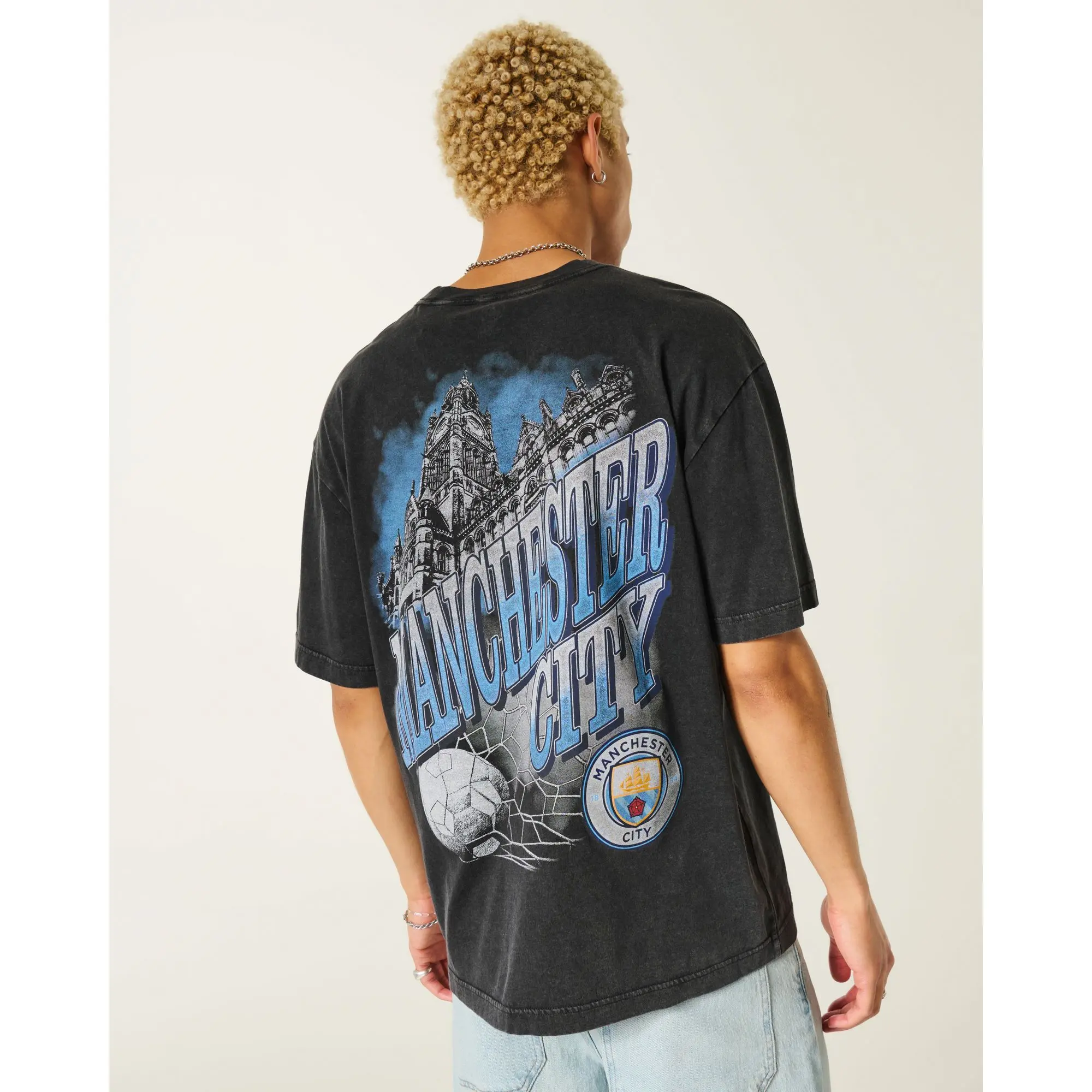 A super soft 100% cotton tee featuring official licensed Manchester City F.C. print graphics at the left chest and back. Crew neckline, short sleeves. Imported.