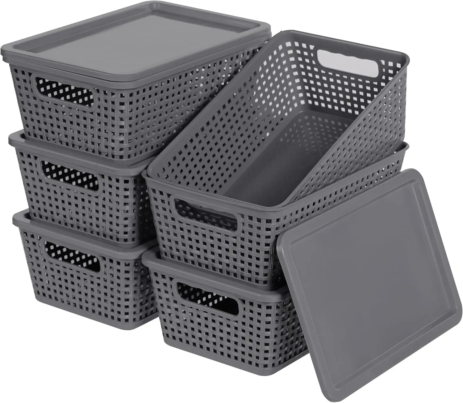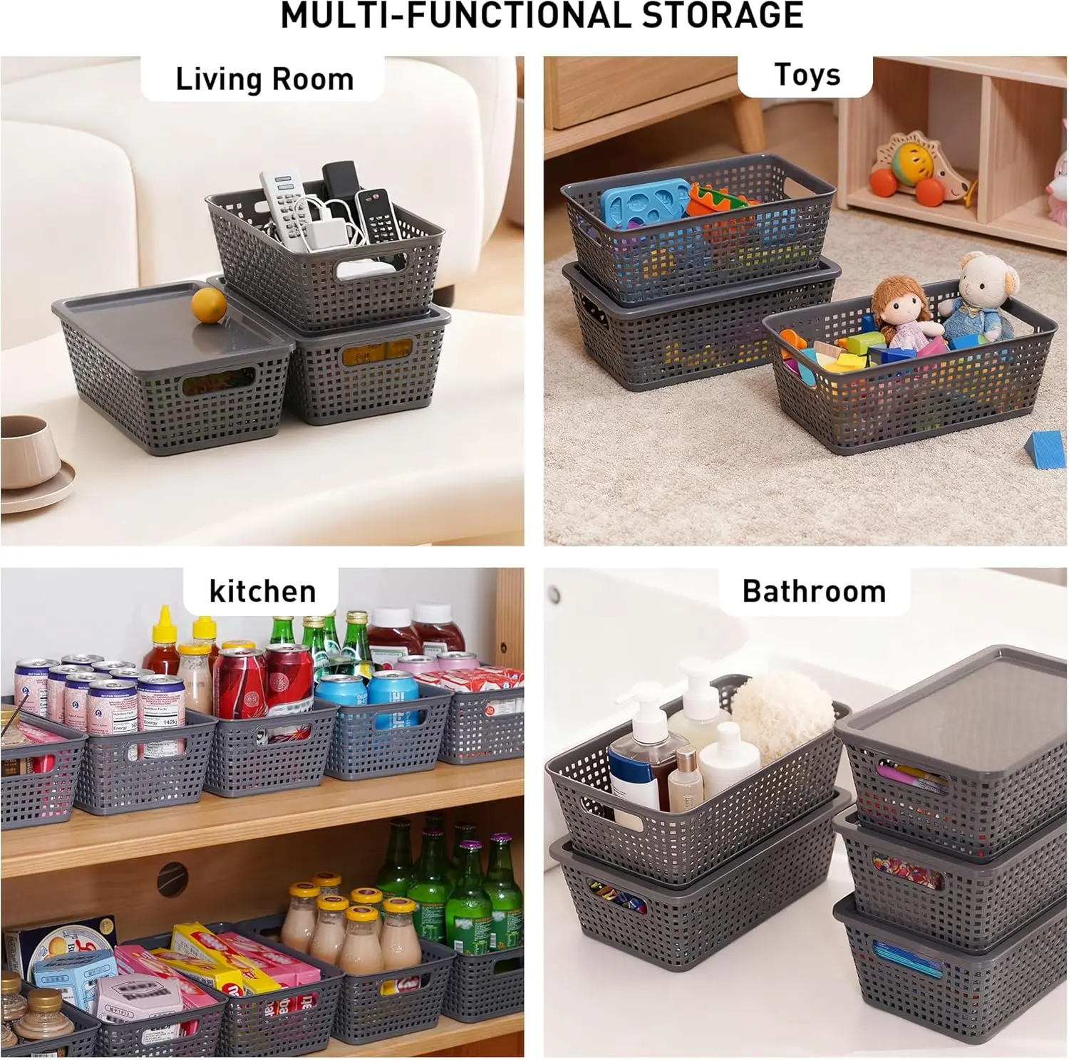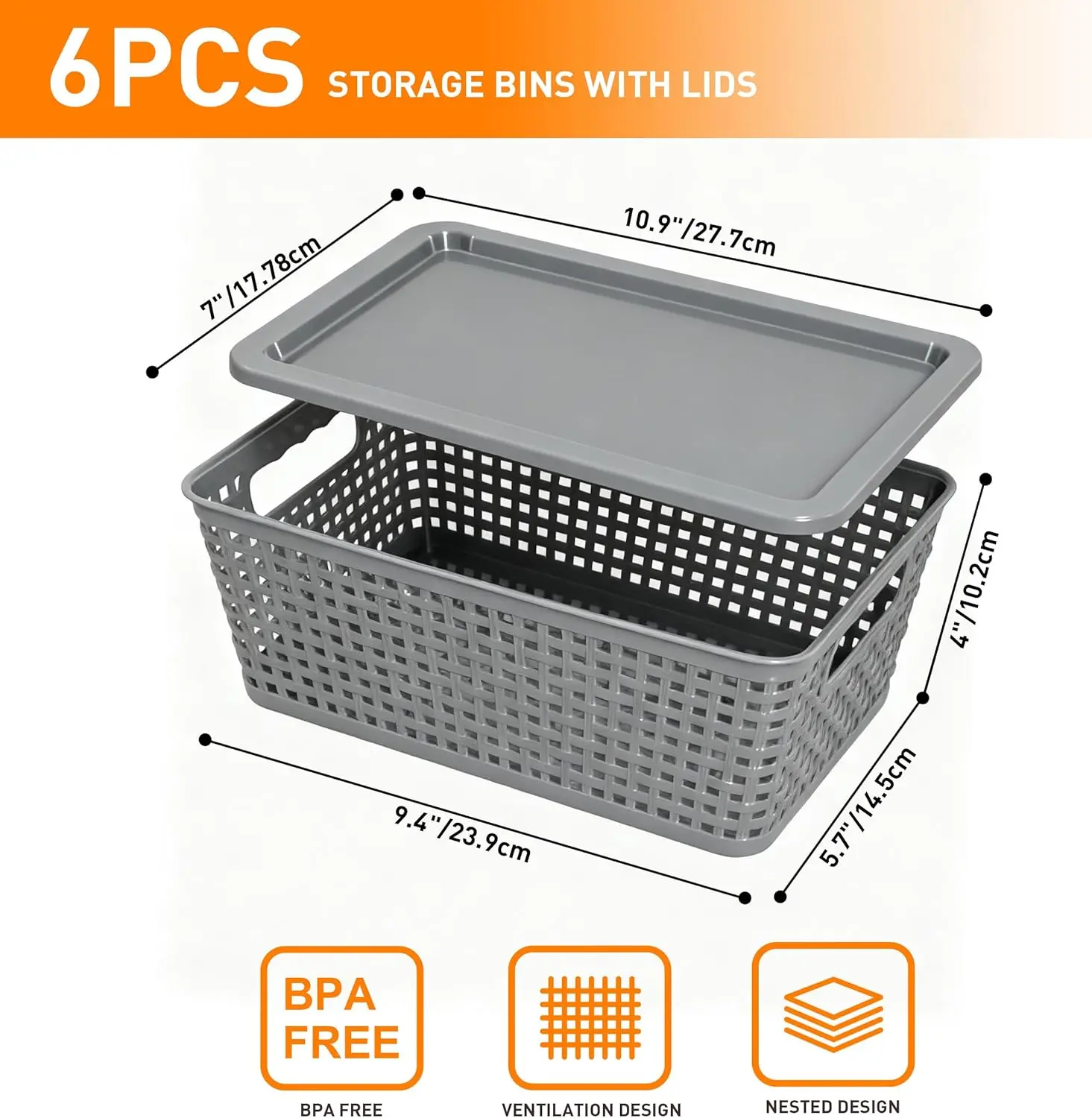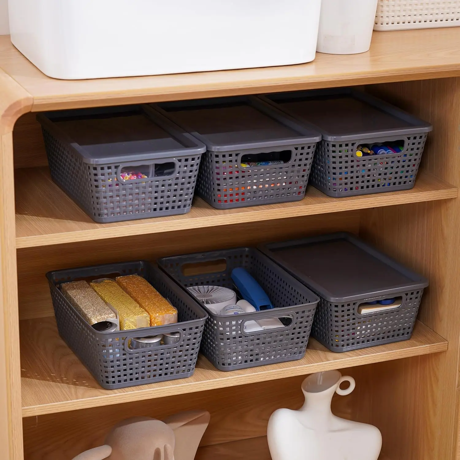 ·Multifunctional Storage:This set of 6 gray plastic storage bins with lids is perfect for organizing shelves, drawers, desktops, closets, and more. Ideal for stationery in classrooms, or office documents, bathroom amenities, it transforms cluttered spaces into tidy, efficient areas