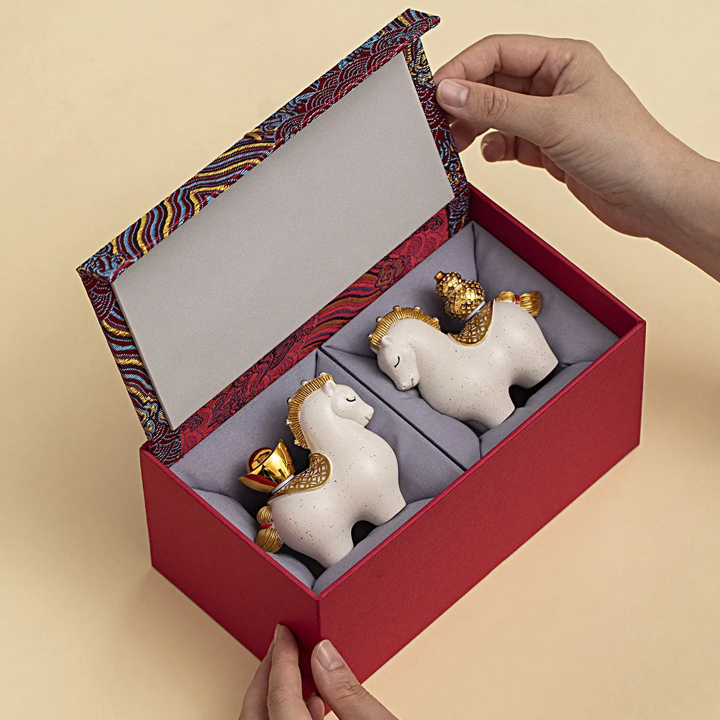 Simple white with [yuanbao] + red pattern gift box