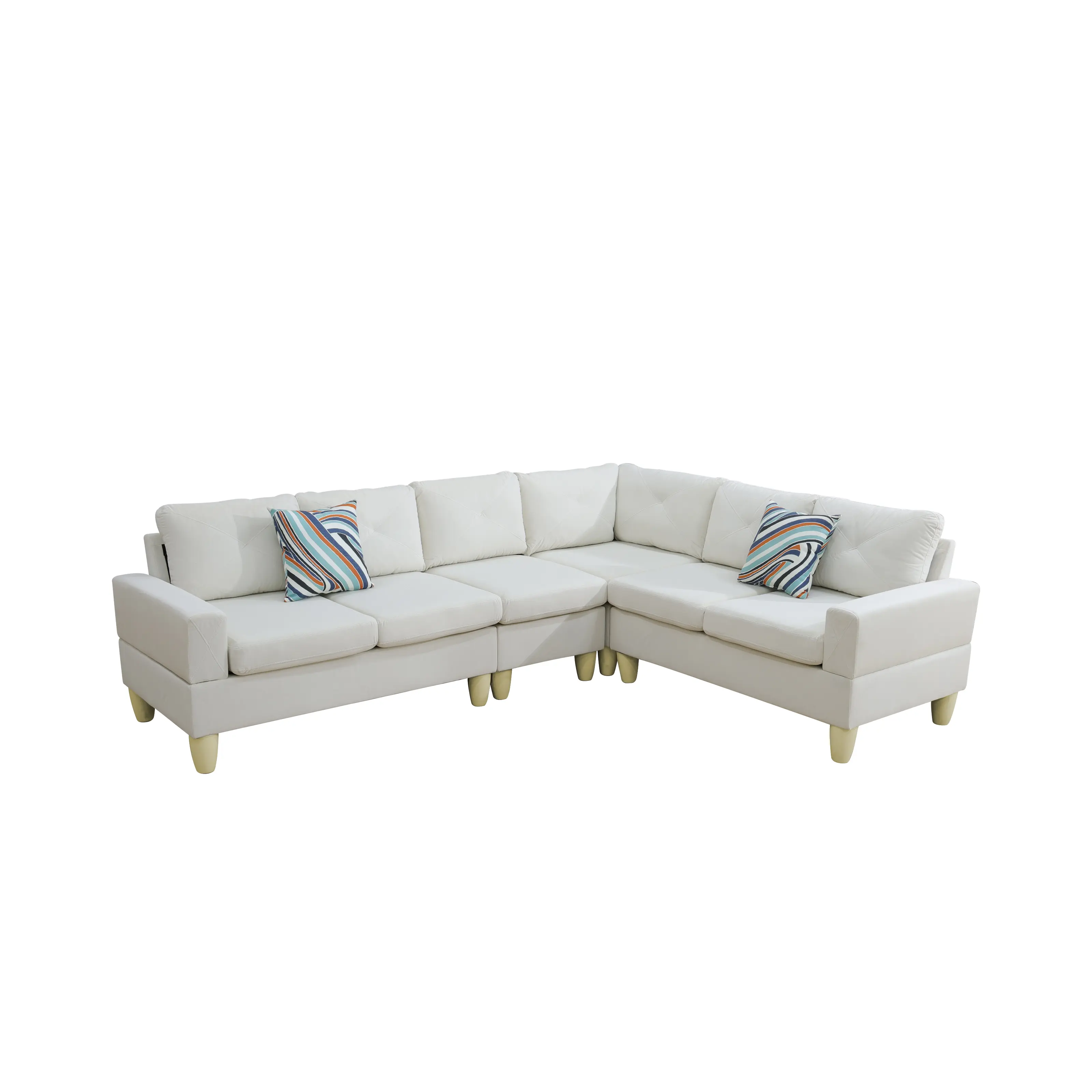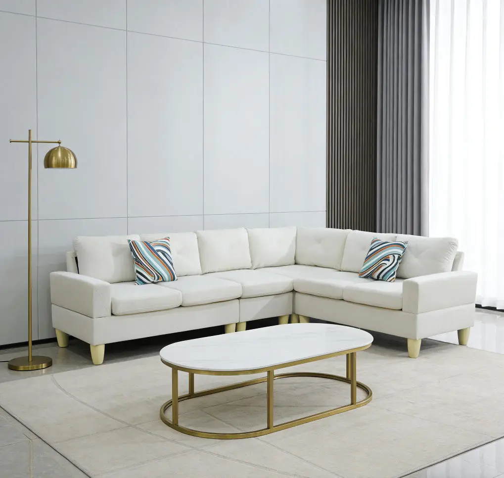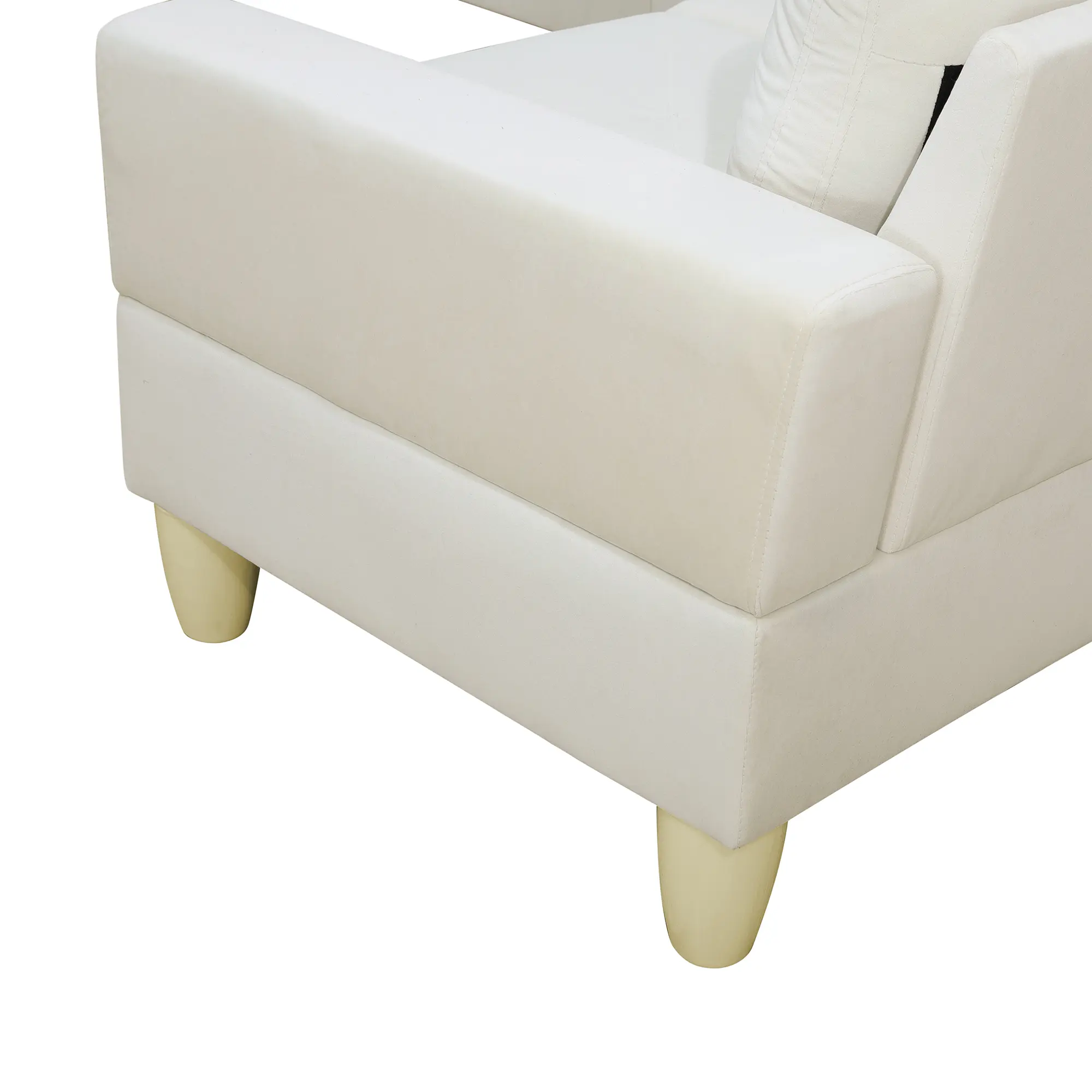Off-white Fluffy Fabric U-shaped 3-Piece Living Room Sofa set