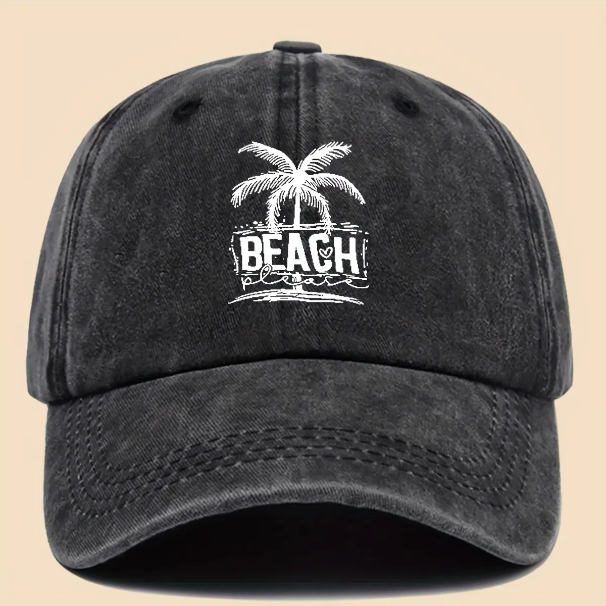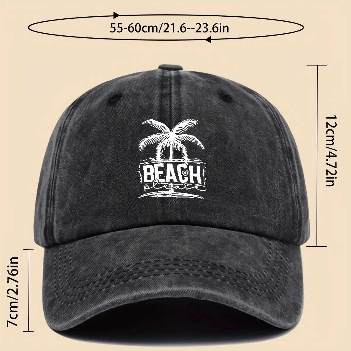 "Cool & Breezy" Unisex Washed Baseball Cap - Tropical Palm Tree And Beach Print, Adjustable Urban Skater Hat for Couples, Breathable Sun Protection for Surfing, Cycling, Hiking, Parties! Perfect Gift for Birthdays - Beachy Vibes Meet City Style!