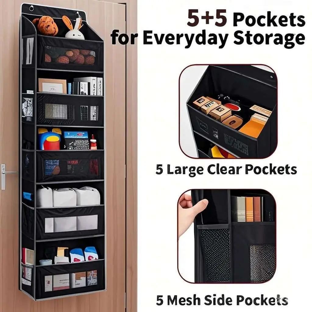 Over-the-Door Hanging Organizer with 5 Large Pockets | High-Capacity 60 lb Storage Bag | Space-Saving Bedroom/Bathroom/Closet/Dorm Organizer | Back-to-School Essentials, No Tools Required, Premium Non-Woven Pantry & Kitchen Storage