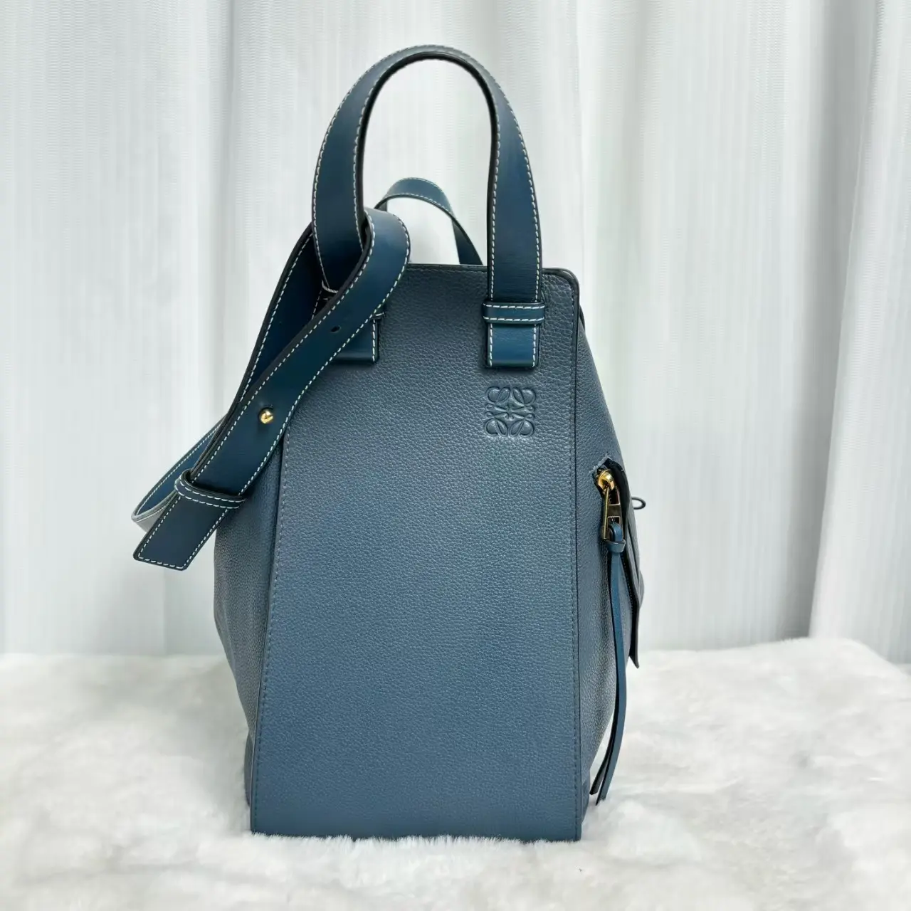 LOEWE Hammock Bag | Blue Grained Calfskin Gold Hardware