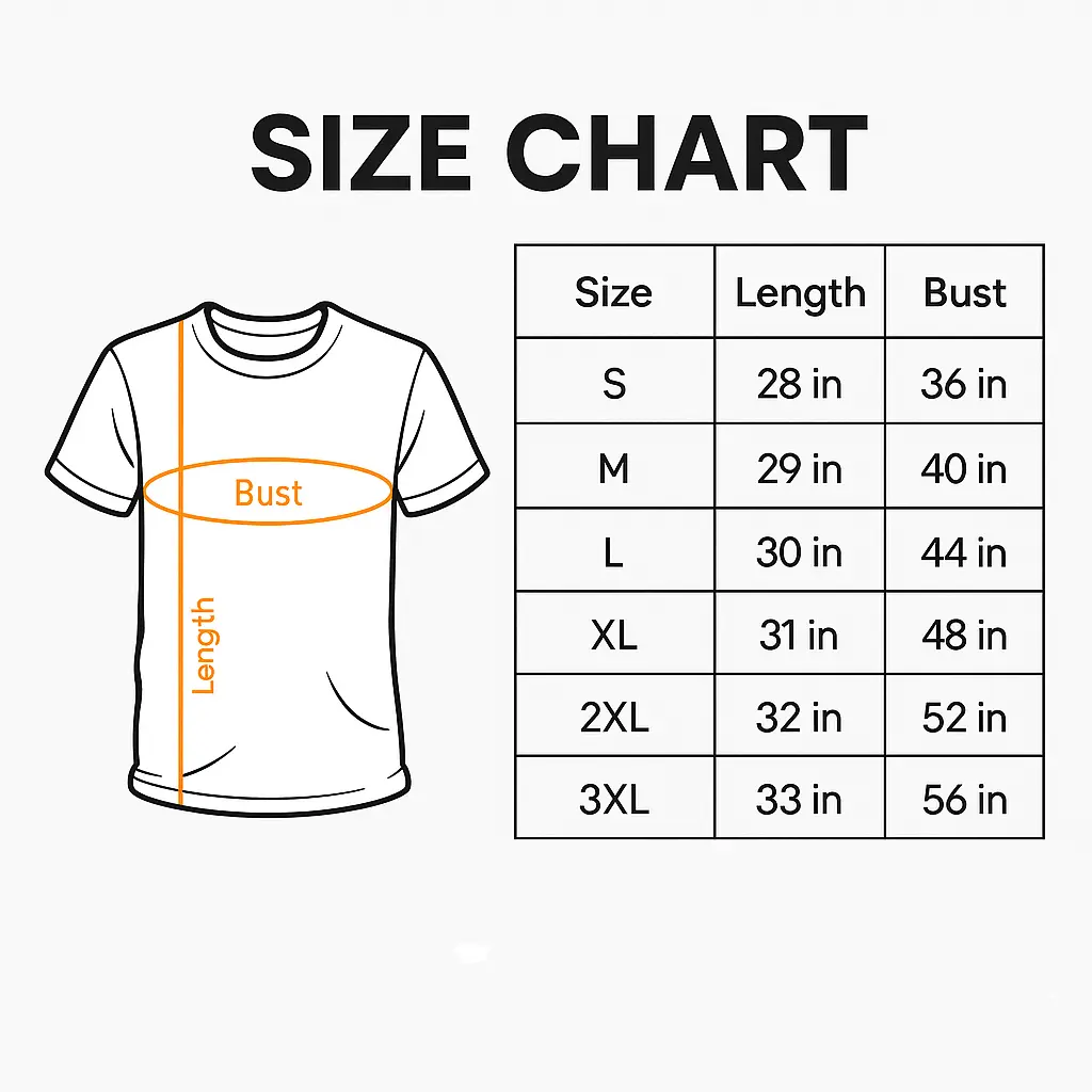 Each shirt is custom-printed just for you, so we do not accept returns or exchanges due to sizing issues. Please double-check the sizing before placing your order. If there's a problem with the product itself, we’re happy to help fix it—just send us a message.