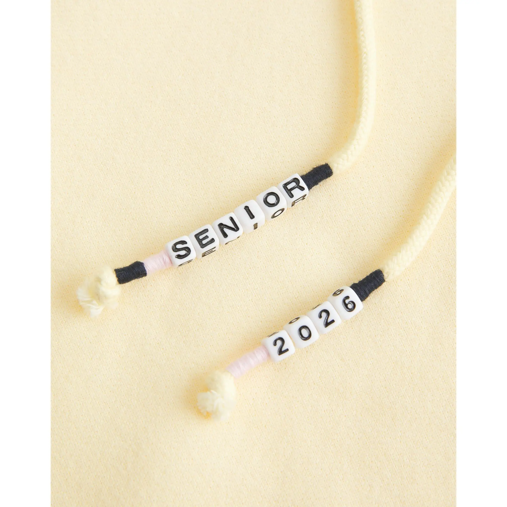 Made with our signature soft fleece fabric, this hoodie features senior statement drawcord beads. Long sleeves, front pouch pocket. Oversized Fit. Imported.