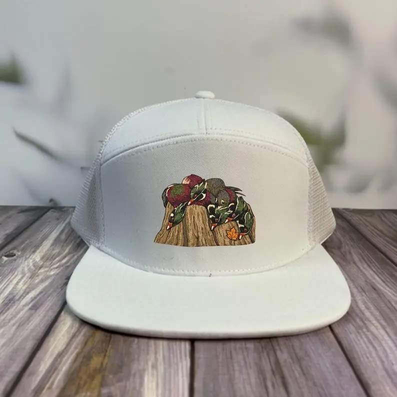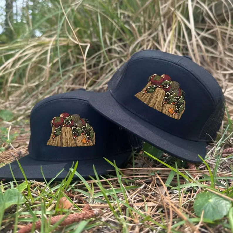 Embroidered Duck Hunting Camouflage Snapback Hat Wood Duck Camo Cap Waterfowl Hunter Hat Adjustable Trucker Hat Outdoor Hunting Gear Gift for Duck Hunters Men Women Durable Stylish Camo Hunting Accessories