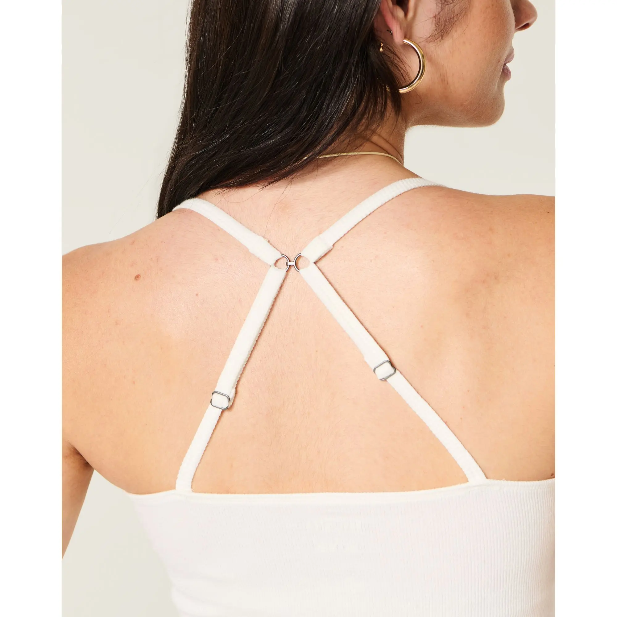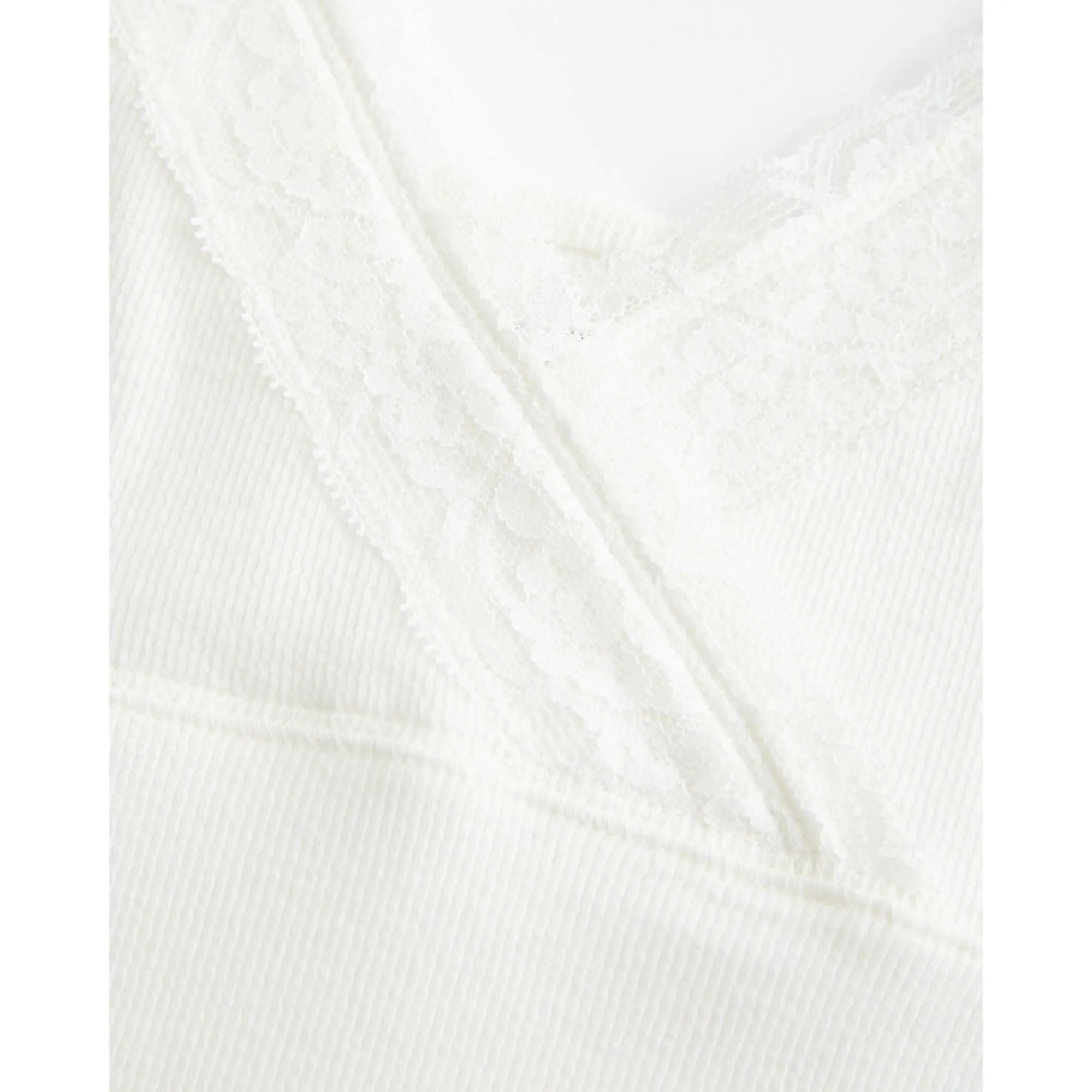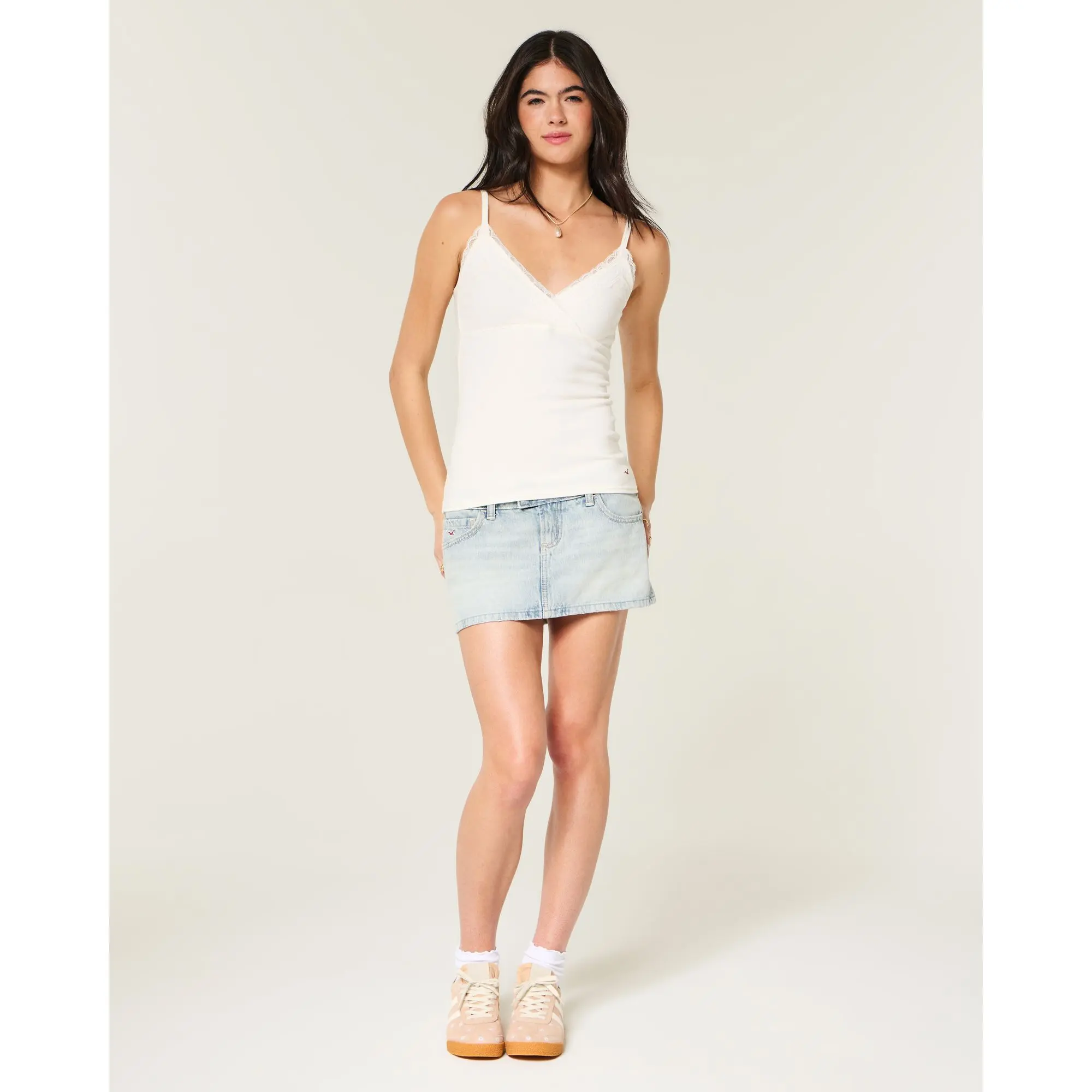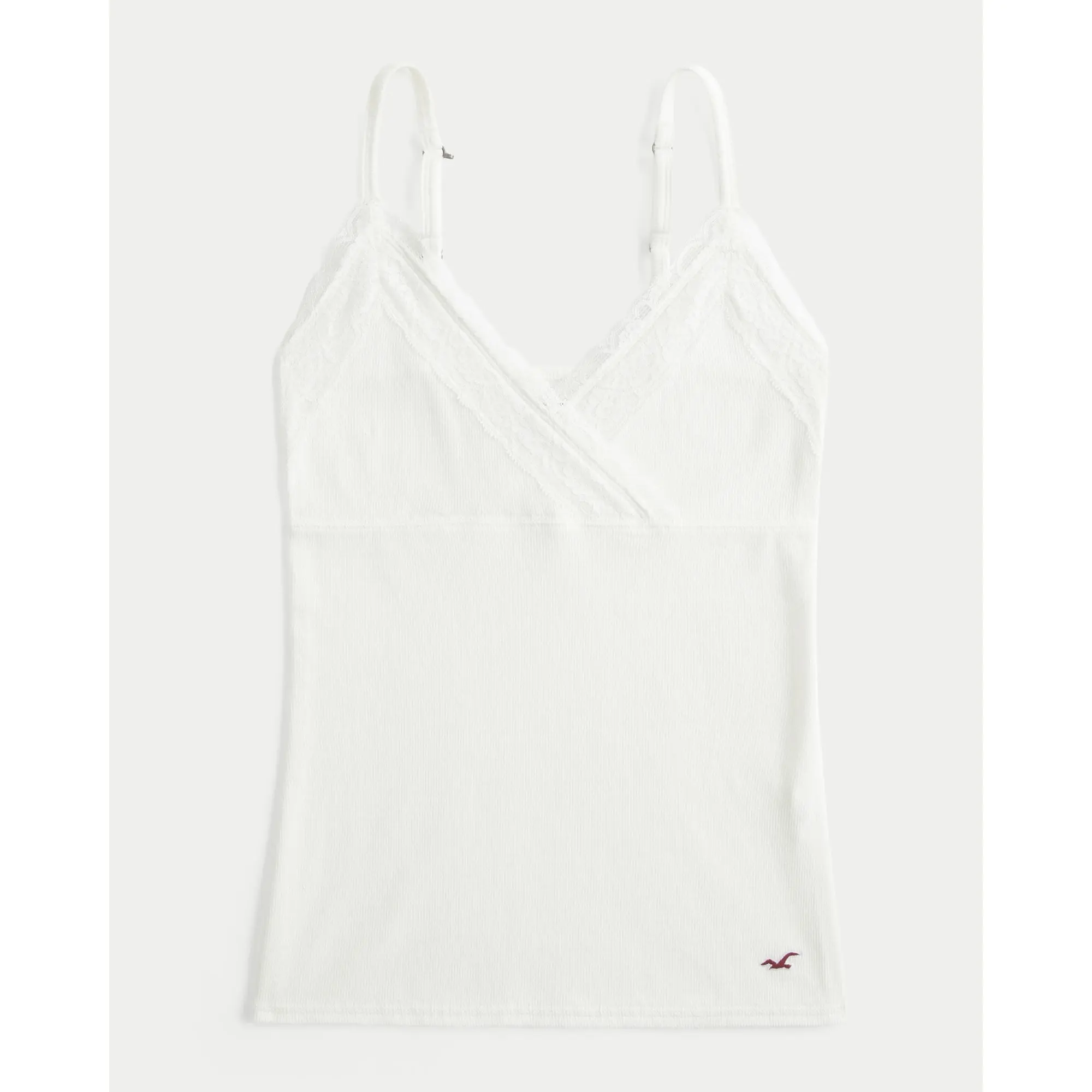 Comfy and super soft, this cami features a wrap-style v-neckline with pretty lace trim. Embroidered logo icon, adjustable straps, longer length, soft cotton blend. Slim Fit. Imported.