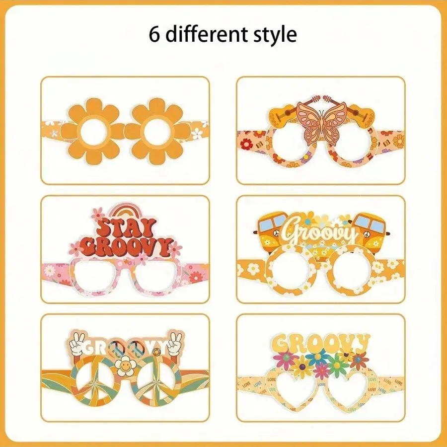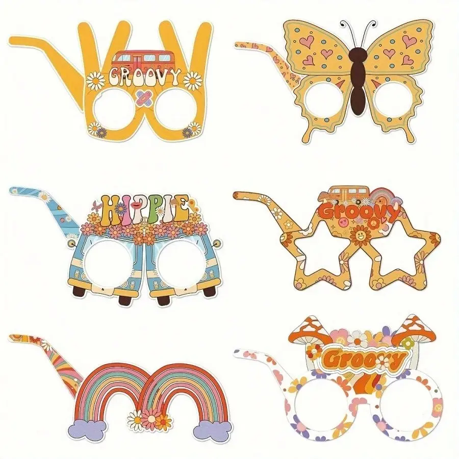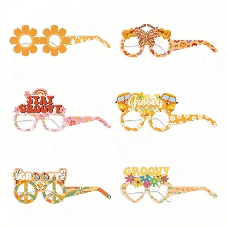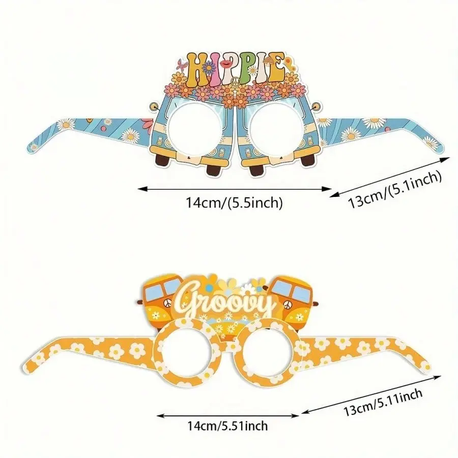 【Hippie Theme】: These retro paper glasses feature a fun hippie theme, perfect for adding a vintage touch to any party.