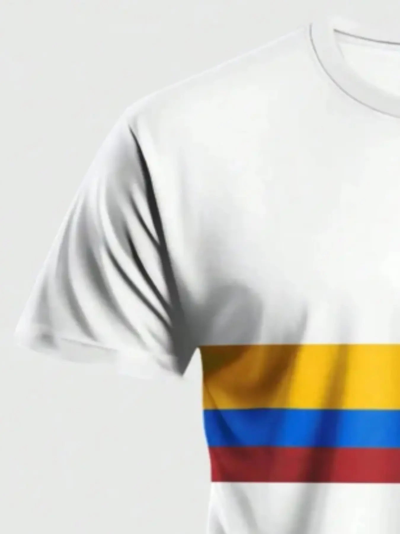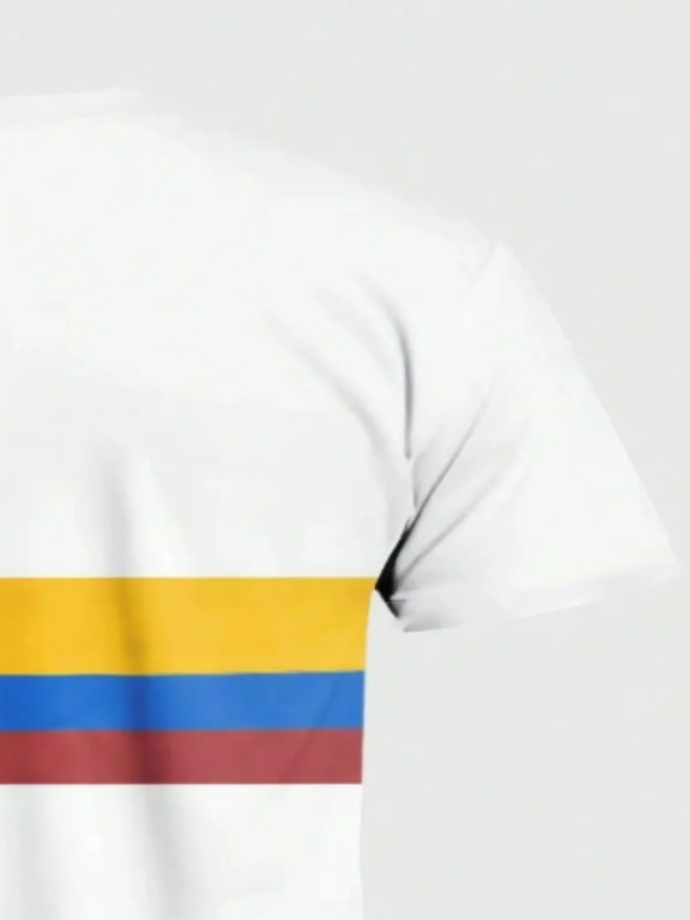 【National Pride】: Showcase your patriotism with the vibrant Colombian flag stripes on this sporty T-shirt.