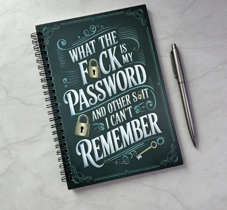 Tired of fumbling with passwords? Our Funny Password Keeper Notebook is here to help! 🌟 This spiral-bound journal turns password frustration into daily laughs.
