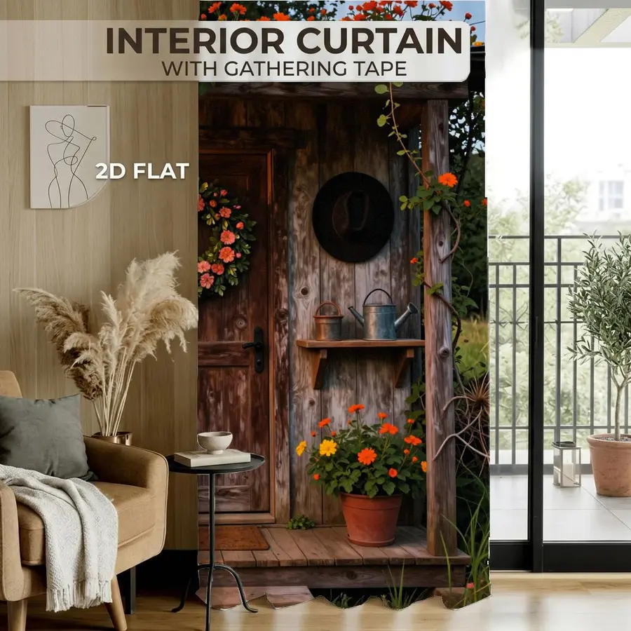 Rustic Farmhouse Cabin Door Floral Vine Sun Blocking Curtains 2Pcs Digital Printed Rod Pocket Window Treatment for Bedroom Office Kitchen Living Room Study Home Decor Multiple Sizes Easy Installation