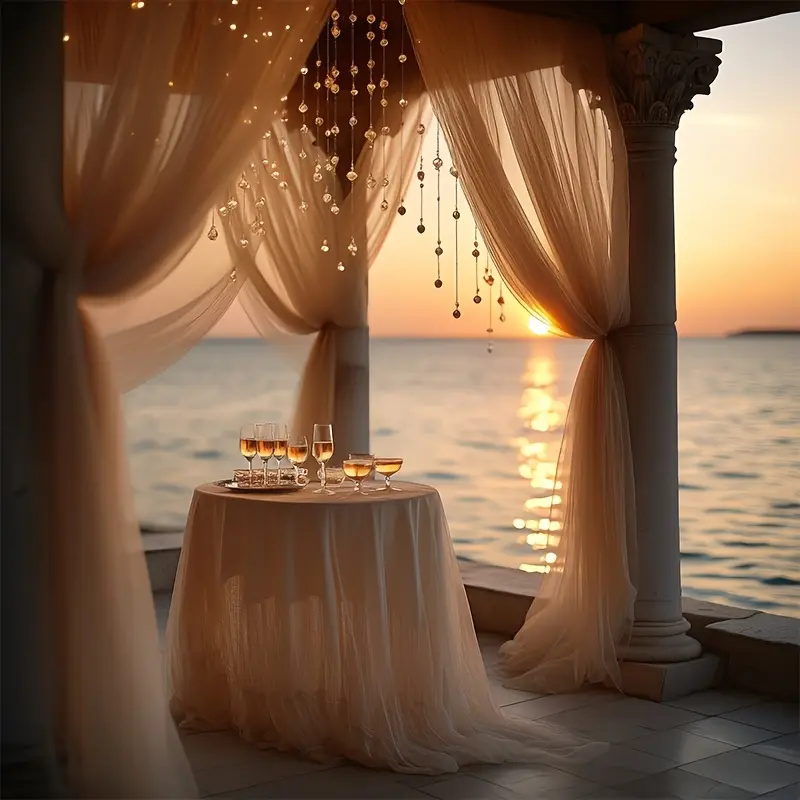 This romantic tulle fabric piece is perfect for large weddings, exuding an ethereal beauty while being versatile and practical. It can be used as a key element in wedding decorations such as arches, ceremony backdrops, banquet decorations, and tent décor.