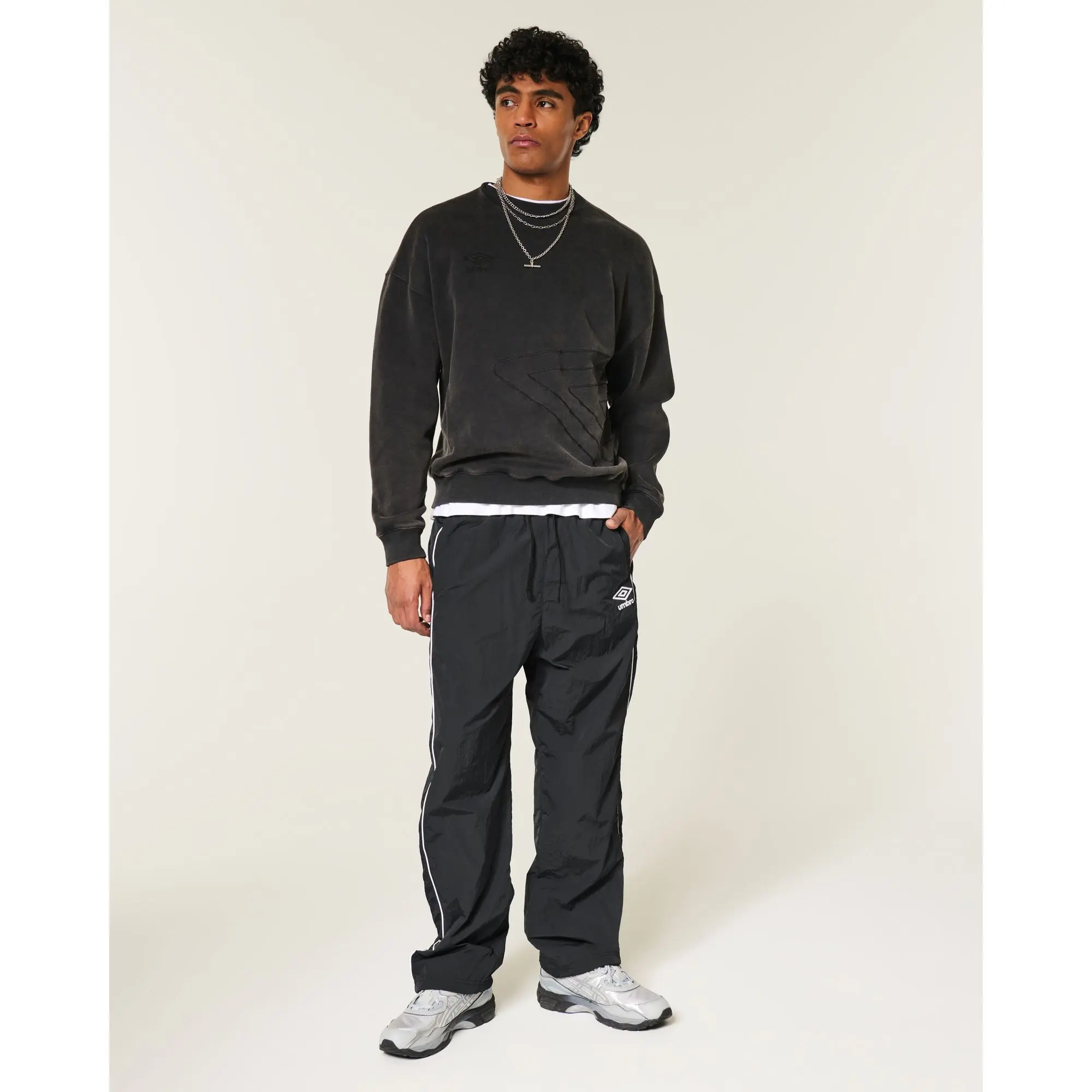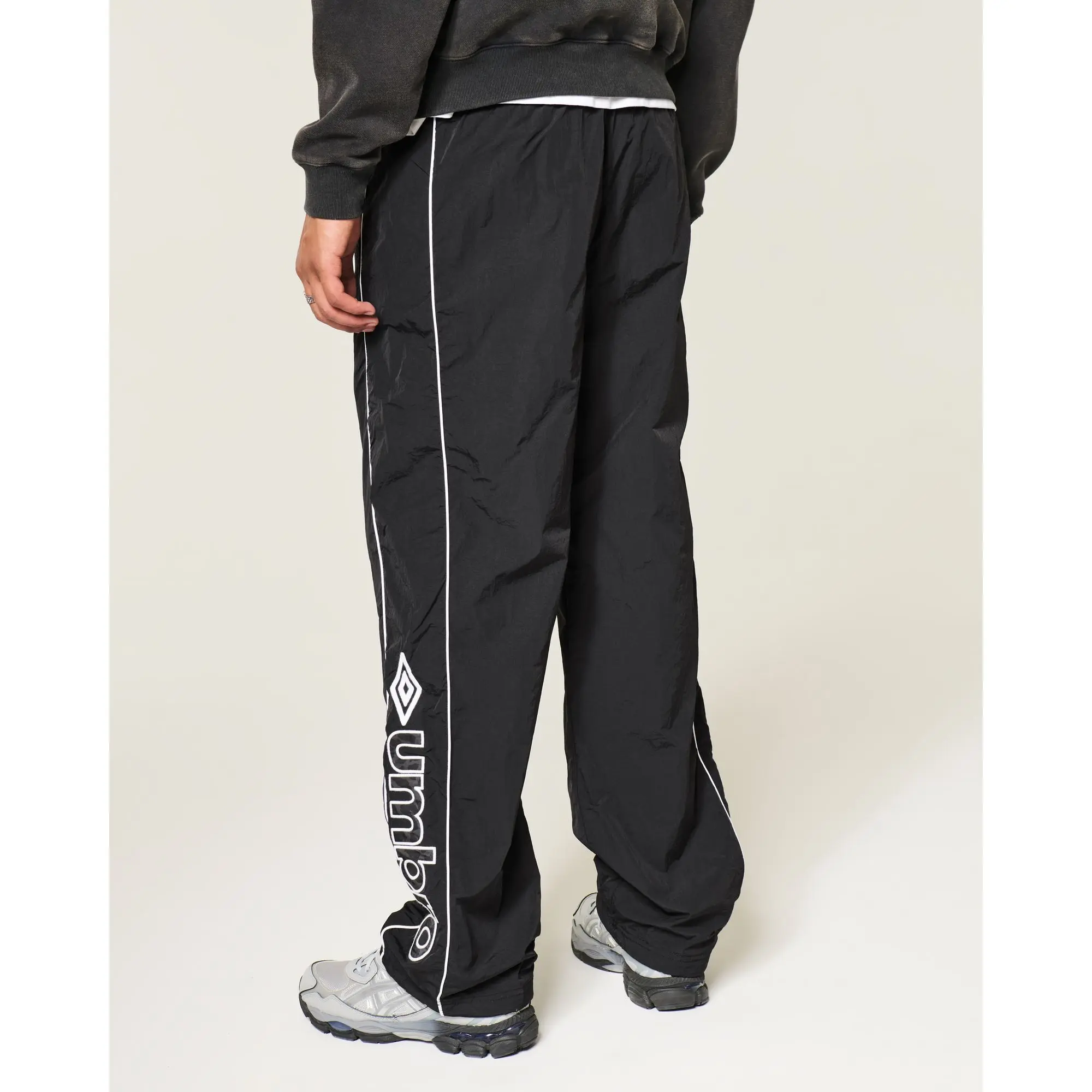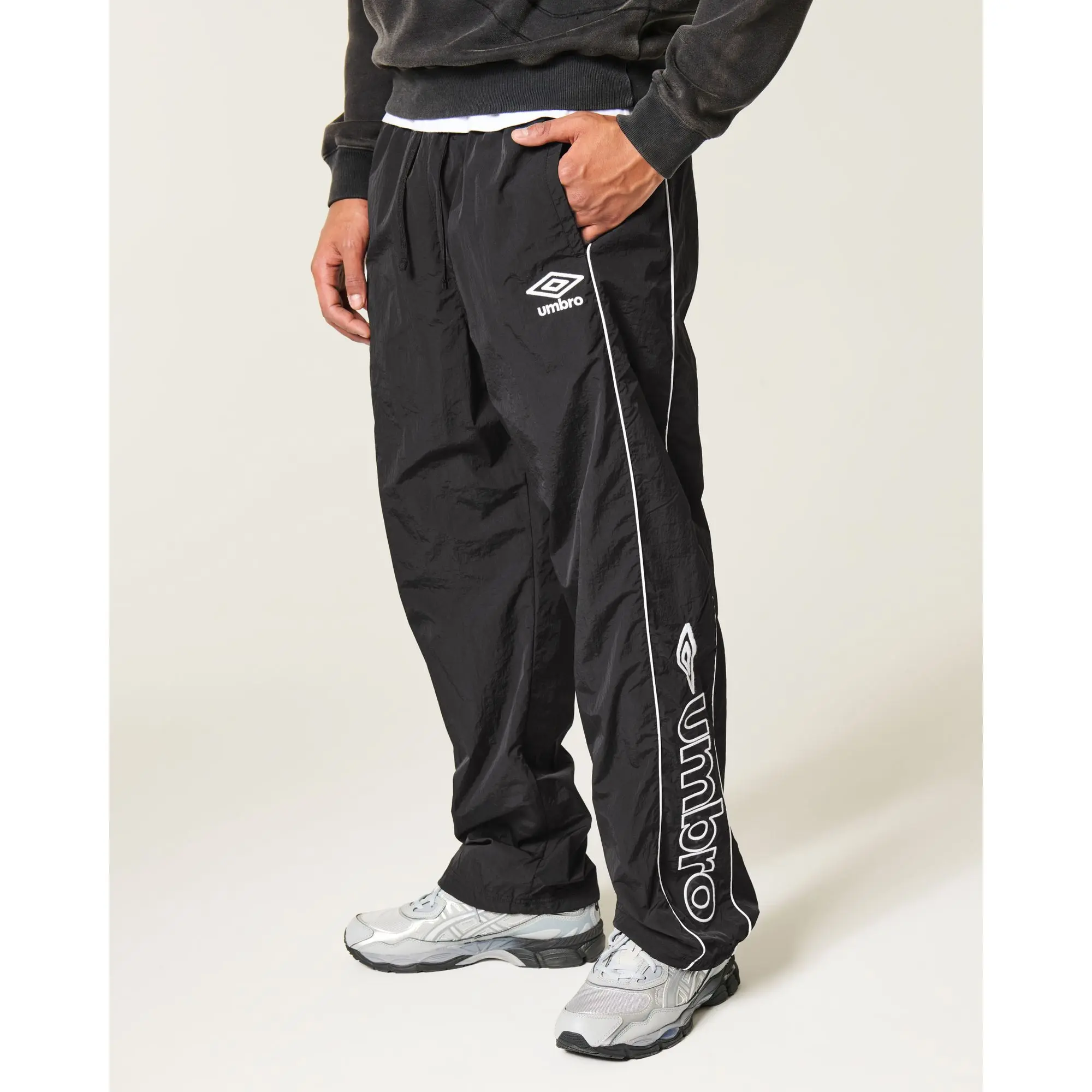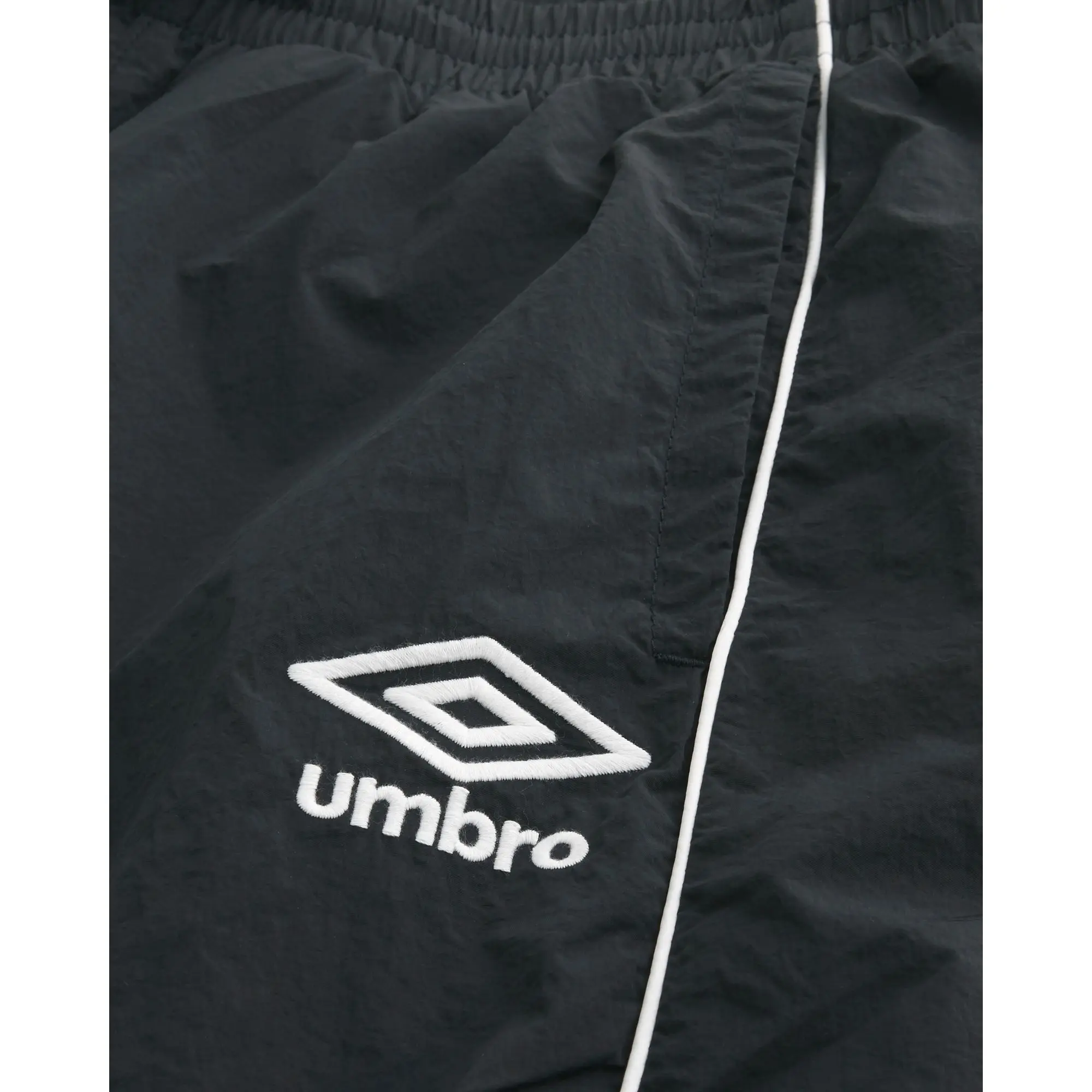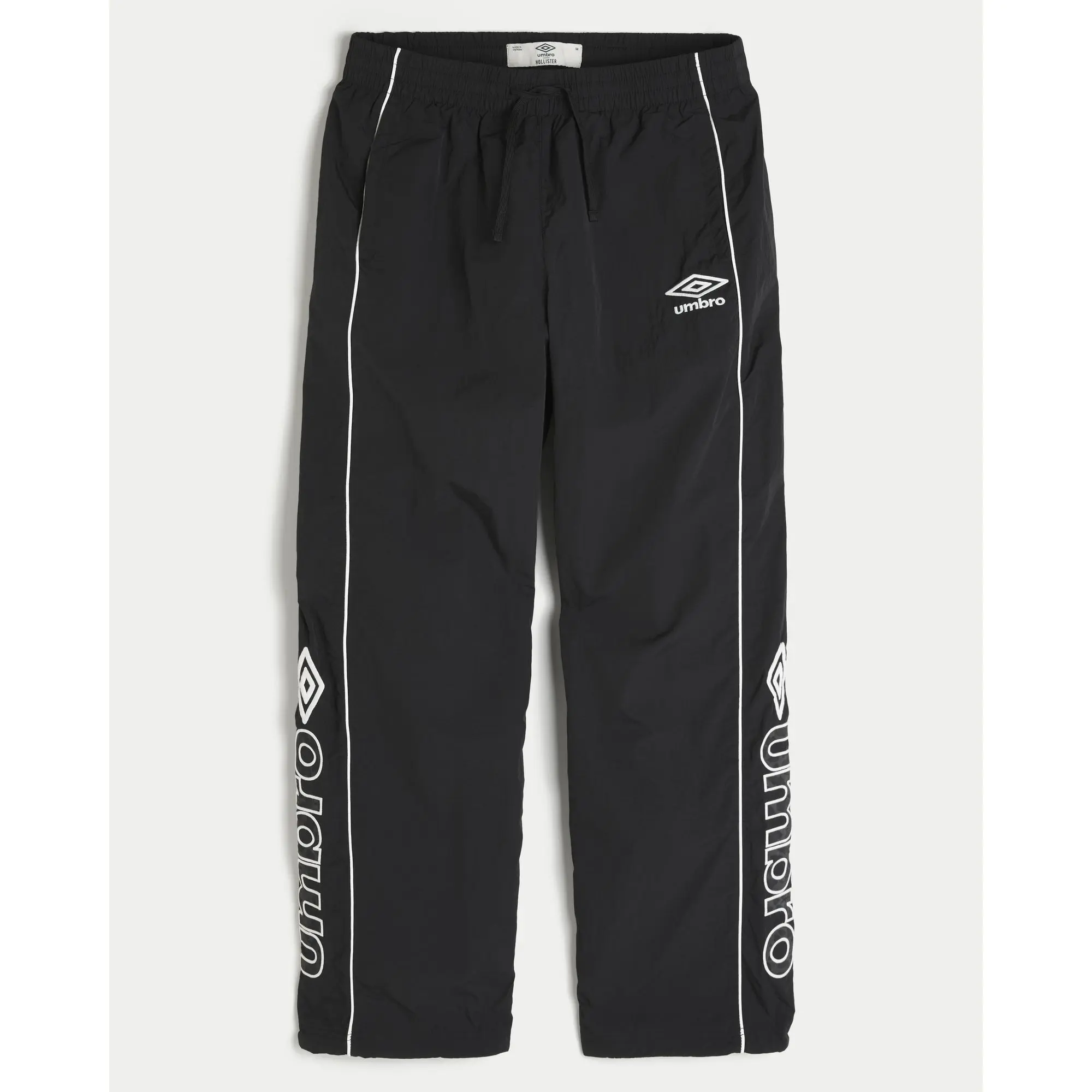 Classic track pants designed with a baggy leg and drawstring waist, featuring official licensed Umbro graphics. Pockets. Imported.