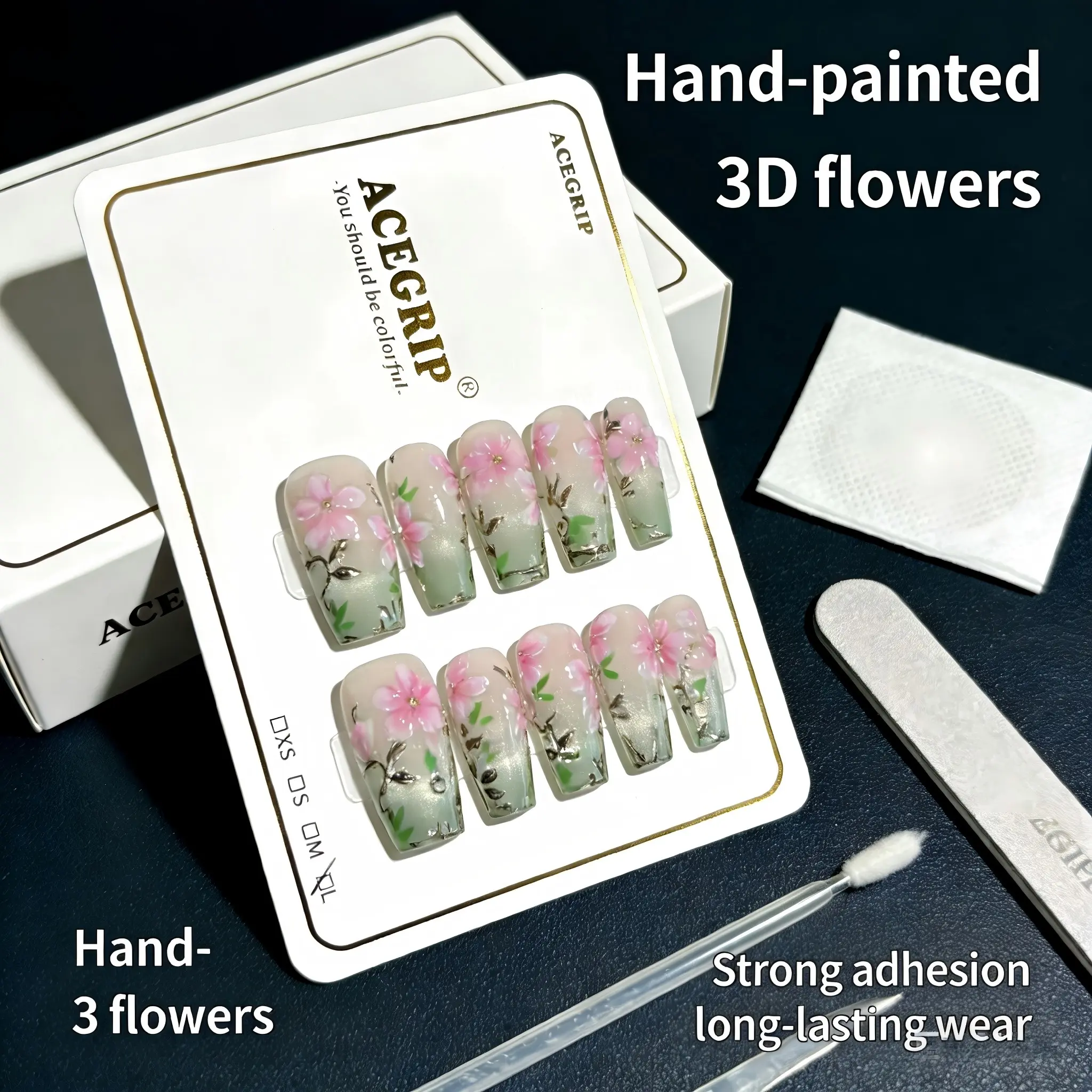 #PressOnNails #HandmadeNails #3DNails #CherryBlossomNails #FloralNails #SpringNails #CoffinNails #TikTokNails #NailArt #ElegantNails
