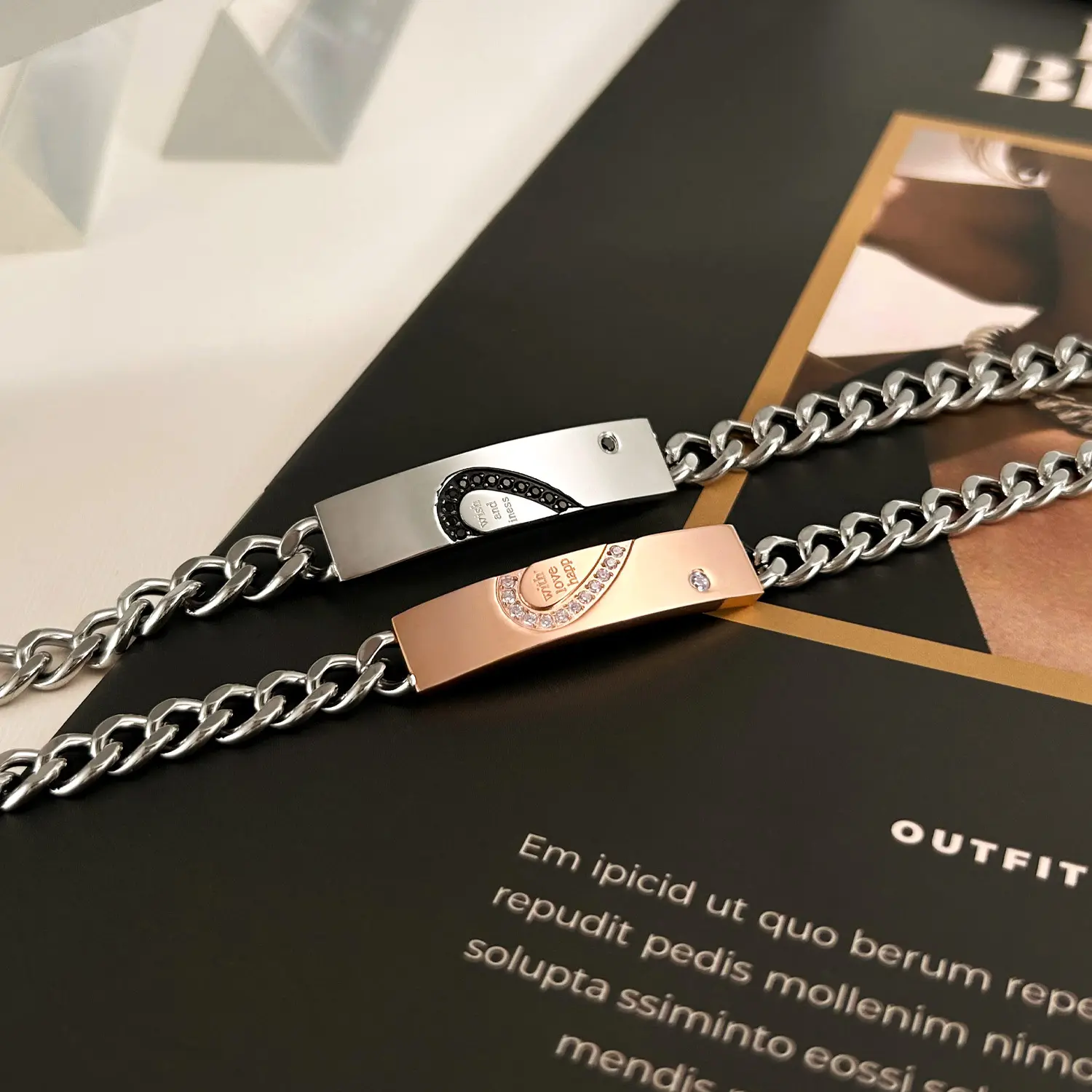 City Fashion Hip Hop Cuban Link Chain, Titanium Steel Couple Bracelets for Men & Women,2pcs His and Hers Couple Bracelets set