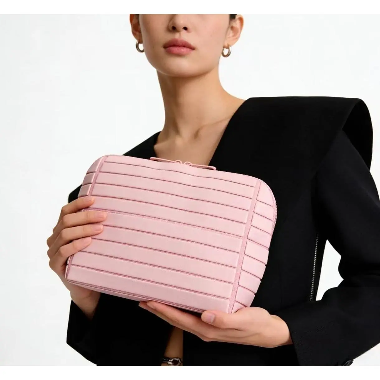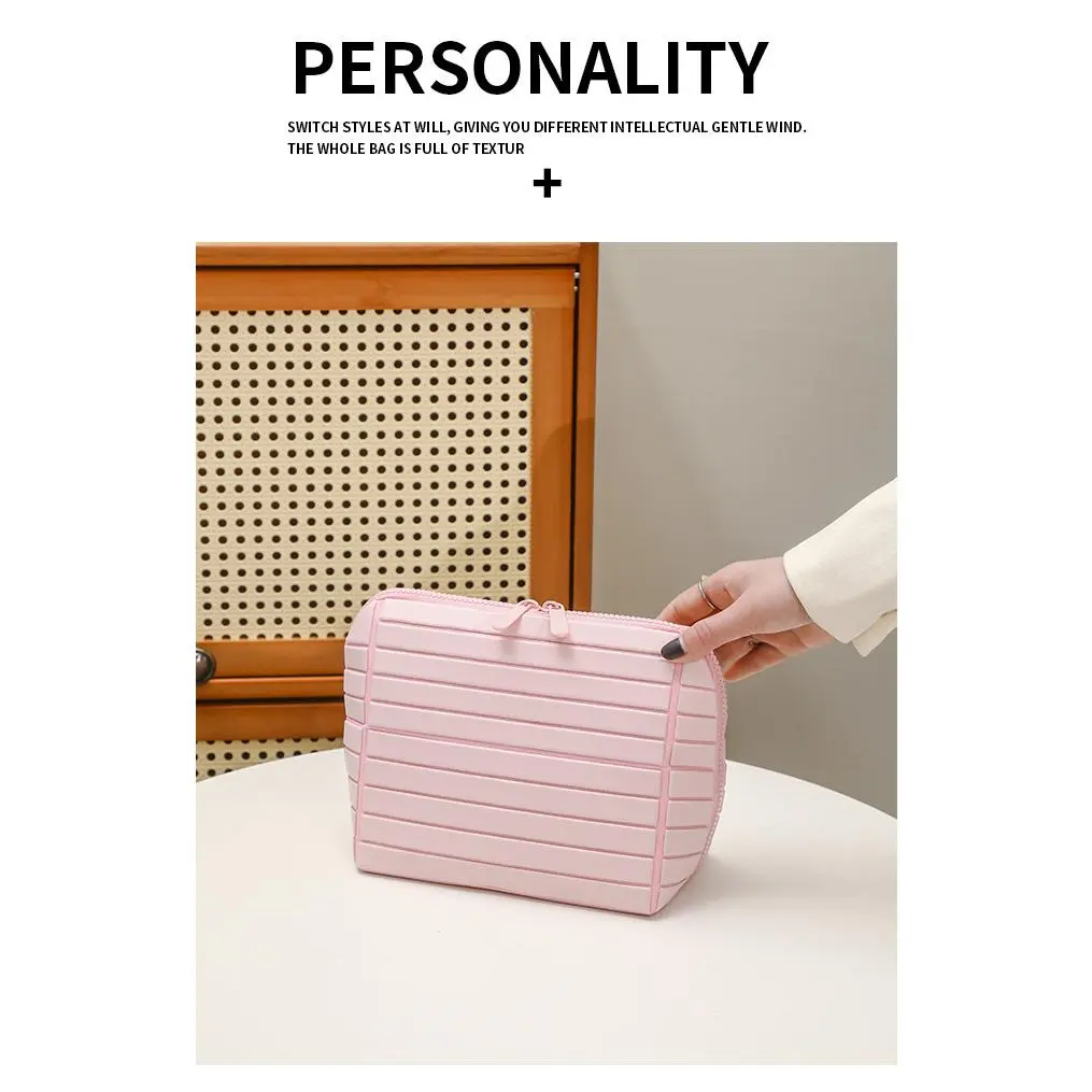 Diamond-shaped bag is super practical, large-capacity, and aesthetically pleasing. It is a storage bag for travel and commuting with a striped three-dimensional design, also suitable as a makeup bag