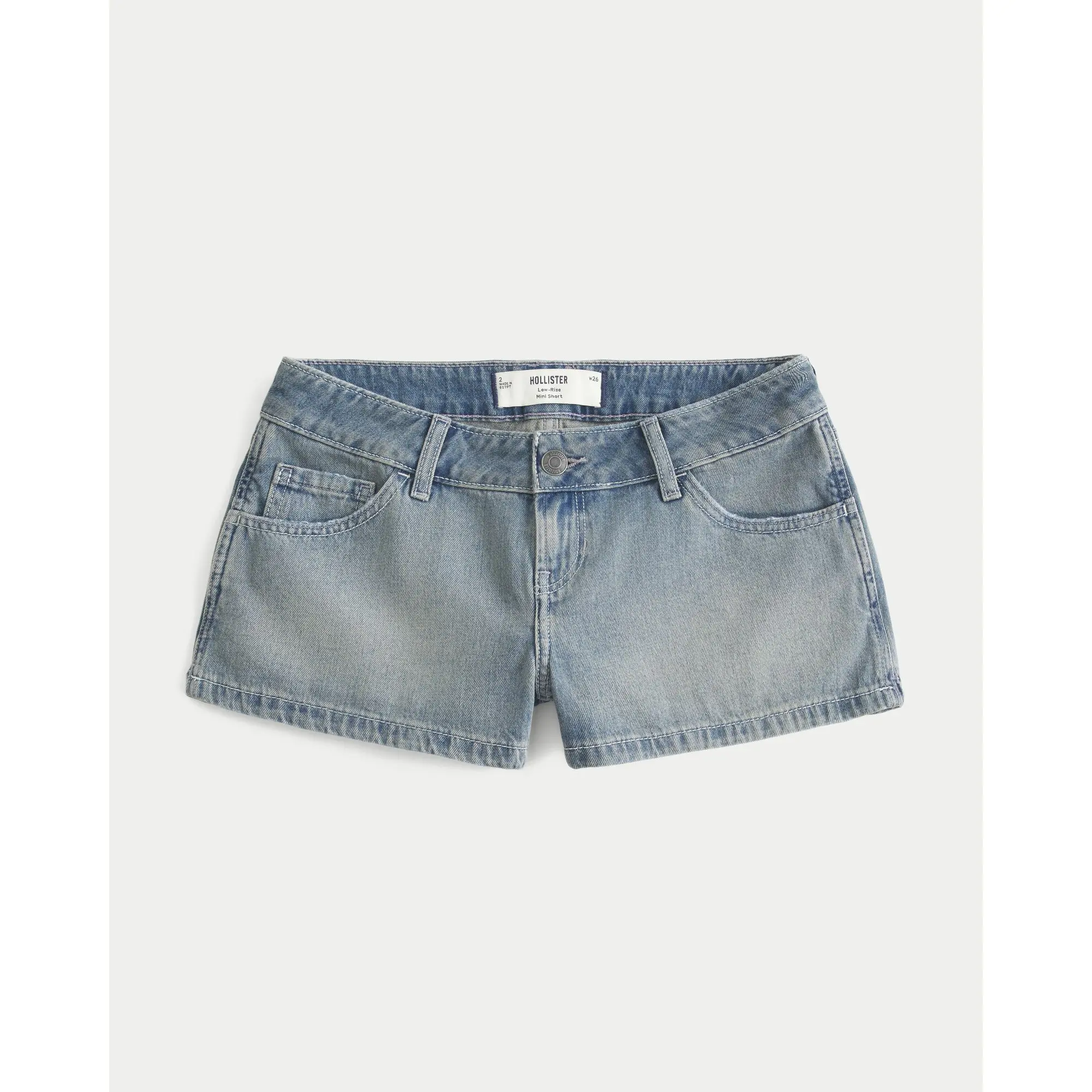 Cute denim mini shorts designed with a low-rise waist. Fading. Imported.