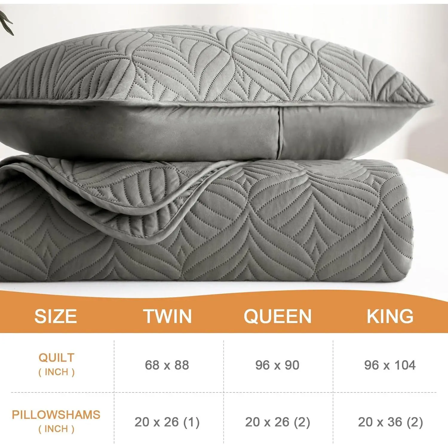 Elegant embossed pattern: With modern style baroque patterns, this beautiful embossed bedspread stands out from plain ones, giving your bedroom and living room an unique and elegant vibeSizes: This quilt set measures 96 x 90 inches and comes with two 20 x 26 inches pillowcases. Suitable for queen size beds. Please carefully measure the size of your bed or sofa to select the correct size bedspread setSoft cozy coverlet: This ultra comfortable quilt bedding set is soft to the touch and reversible.Thanks to its breathable brushed polyester padding and cover, the cozy lightweight coverlet is well suited for year-round useVersatile bedspread and cover: Combined with practicality and beauty, this lightweight quilt set is your wonderful pick for indoor and outdoor use.It is a stylish ornament for your home decoration, a decent present for your families and friends, a cozy cover for your bed sofa loverseat couch and reclinerCare instruction: The ultrasonic quilt set is machine washed and dried.Machine wash in cold water on gentle cycle, tumble dry low.No blench or iron.Please wash it separately and pat it gently before the first use so as to have a more fluffy flatter and softer bed cover