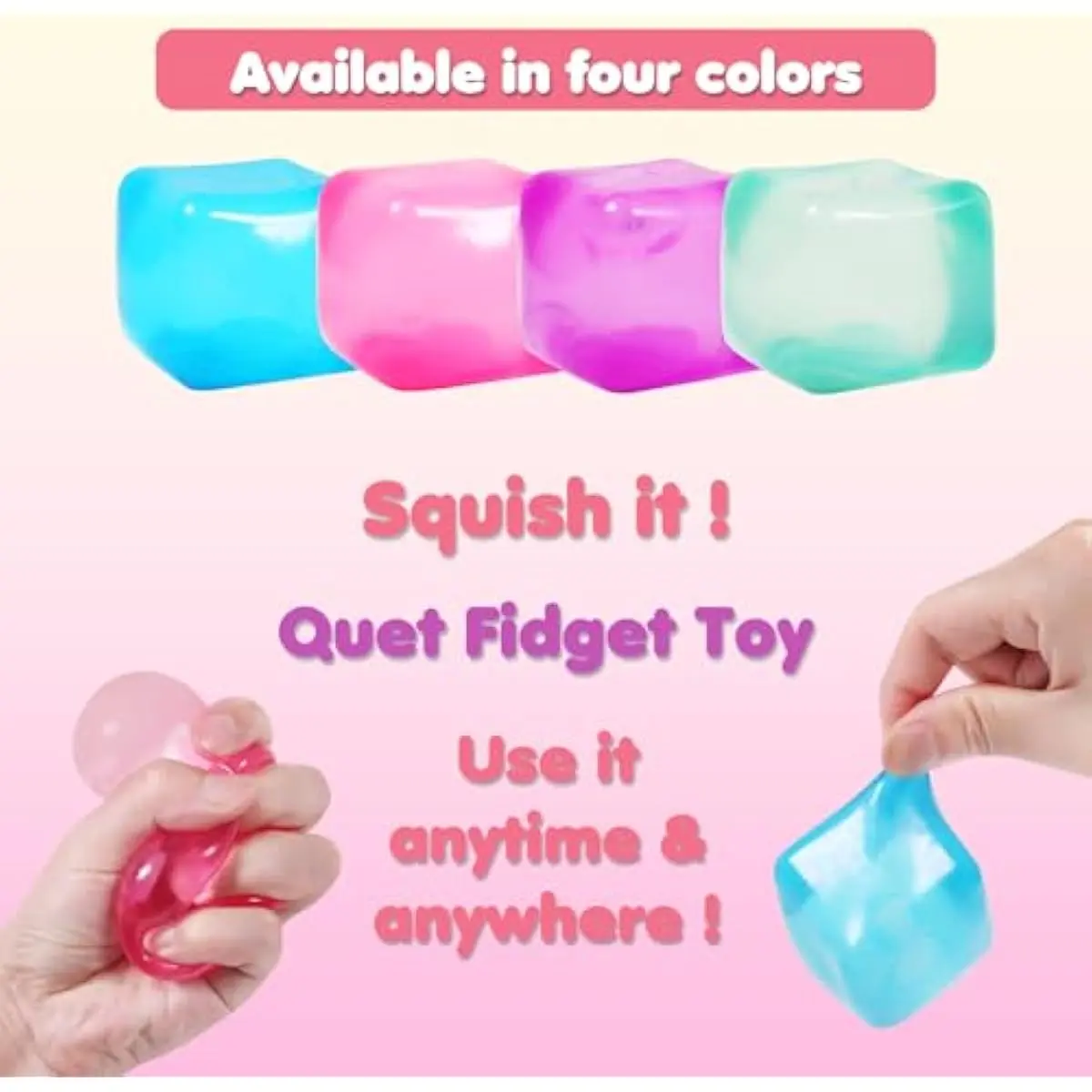 Fun for All Ages: With a variety of vibrant colors,pink, blue, green, and purple,these Cube Stress Balls are suitable for adults, kids and teens,allowing you to mix and match for a personalized stress relief experience or to give as a thoughtful gift to a loved one.With a compact size and comfortable grip, they fit snugly in your hand, offering a silent and satisfying fidget experience that won't disturb others, helping to deter habits like fidgeting, skin and nail picking, and finger cracking, especially beneficial for individuals with autism.