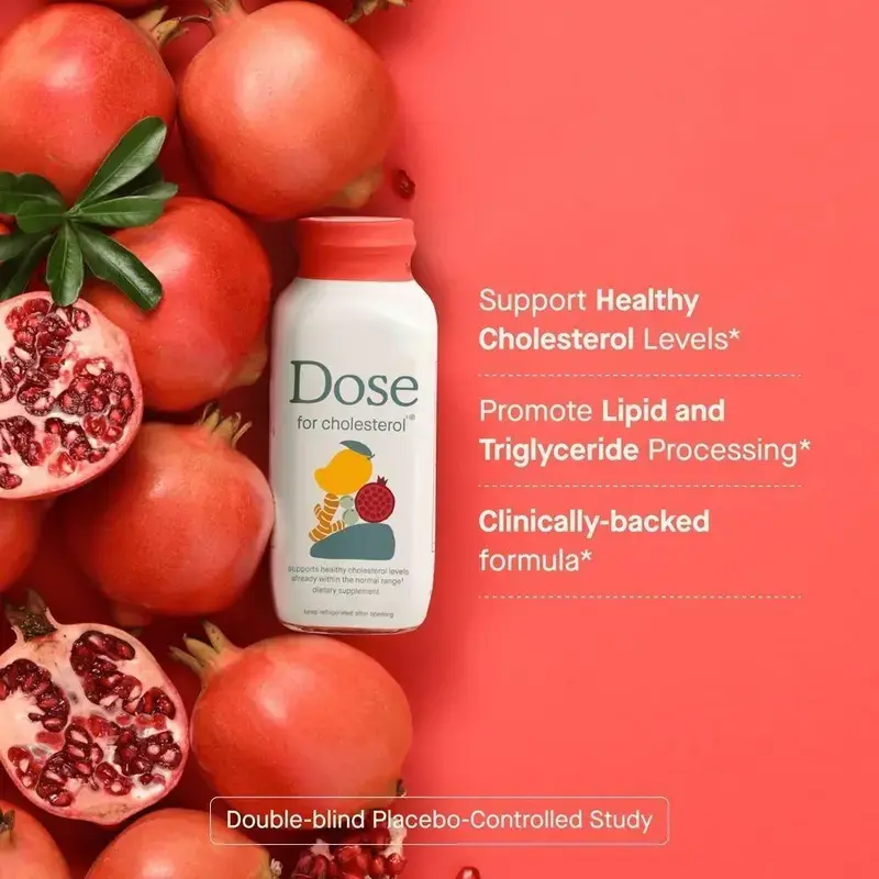 Dose Cholesterol Support 2oz Liquid Shot, Daily Heart Wellness Drink with Amla, Pomegranate, CoQ10 and Curcumin, Herbal Vitamin Blend, Easy Routine, 2025