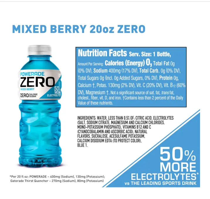 ✨ POWERADE Electrolyte Enhanced Zero Sugar Mixed Berry Sports Drink is your go-to for hydration. Each 20-ounce bottle is packed with electrolytes, perfect for sports enthusiasts. Enjoy the mixed berry flavor without the sugar. 🍓