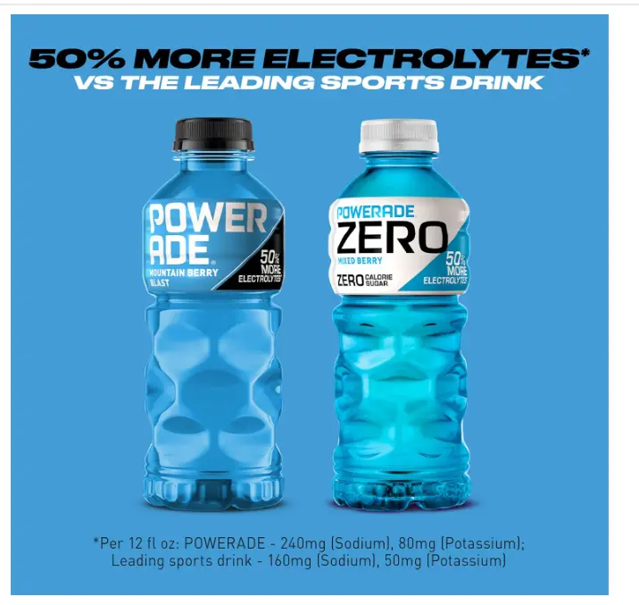 🏃♂️ Stay energized with POWERADE. The zero sugar formula ensures you stay hydrated without the extra calories. Ideal for athletes and active individuals. Experience the benefits of electrolytes in every sip.